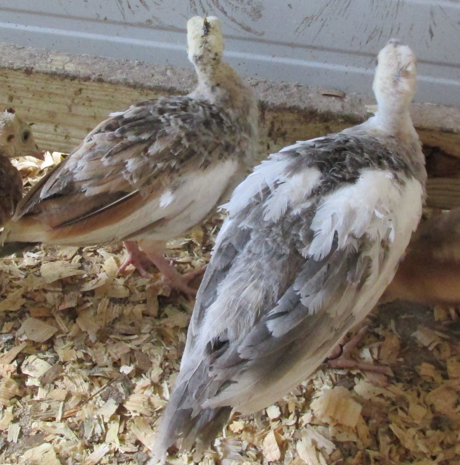 The previous posts are the same three chicks, two weeks, four weeks, and now for the eight week review. I am not sure that they are still Loud Pieds. They hang together all the time.