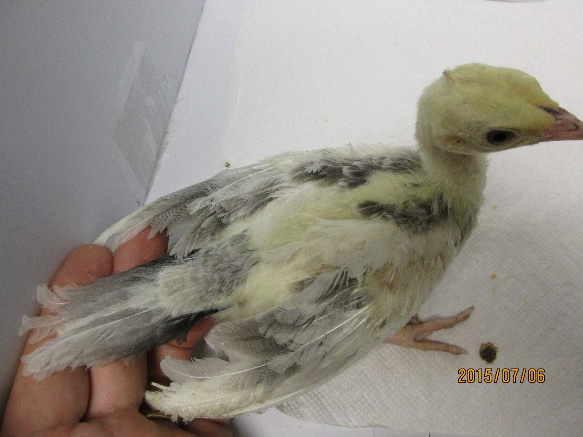 This first chick appears to be a very dark IB split either White or Pied, there is an 80% chance it is double factor WE that I suspect is showing Spaulding. What do you think?