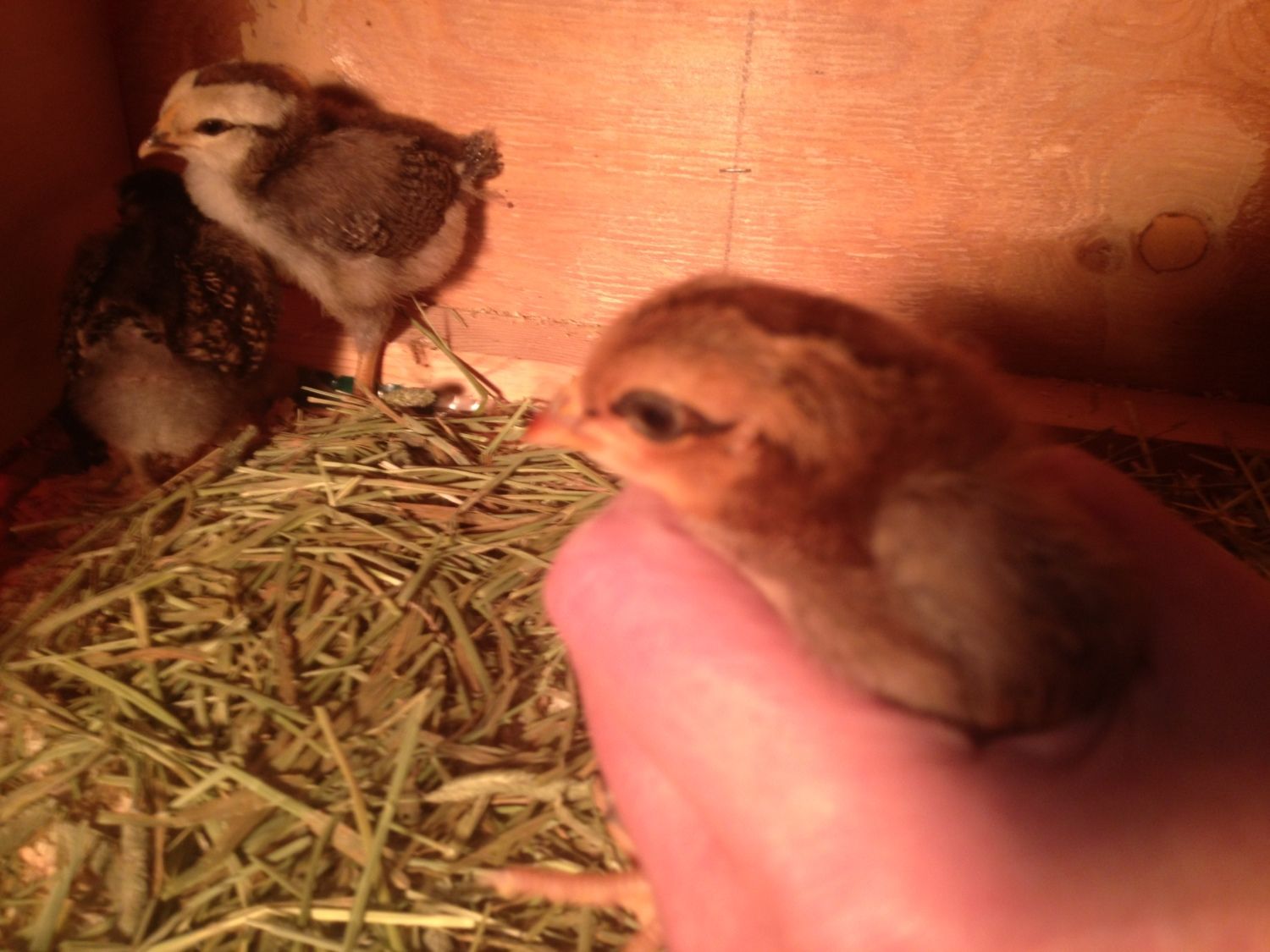 My chicks with mange. Well at least they look like they do because their feathers are coming in.