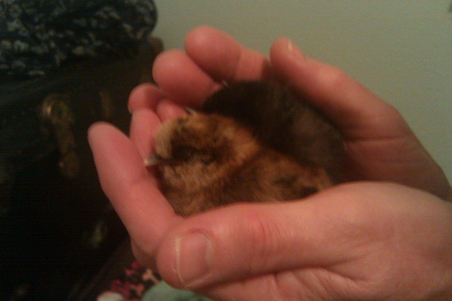 My fuzzbutts! Speck, my Cuckoo Maran pulletBrand new, unnamed Silkie baby,The other brand new Silkie kiddoMisumi, my black Silkie Mizuki, my blue ? Silkie (lighter in person, with a light under-butt LOL)Lucy, who was sold to me as a Rhode Island red pullet..hopefully the breed was not misidentified. Pullet. Dusty and Bunny, who were sold to me as Ameraucanas...are they Easter Eggers? they are pullets