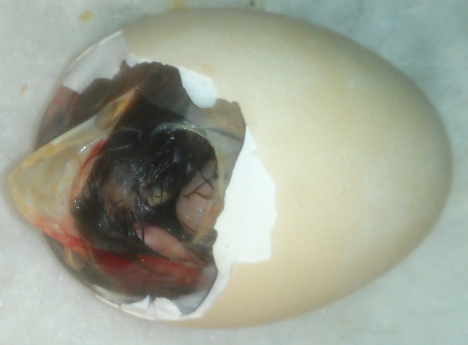 I am uploading a photo of the chick that has been peeping for more than 24 hours but not able to pip. I had made a hole on the fat end of the egg about 10 hours ago, and now I widened the hole a bit. I can see the beak, it had already made the internal pip, Can someone take a look at the photo and advise me, I have put him back in the bator. she just keeps on moving her beak. The beak is right in the centre of the opening, a yellowish triangle.