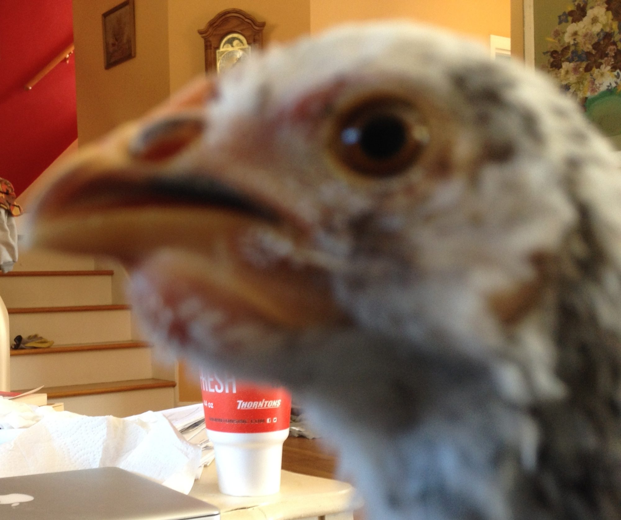 I let her have a couple of days of antibiotics before cutting into it. She was an amazingly cooperative patient. It was like she knew I was trying to help her. I made a 1/2 inch incision in the bottom of the sac. Initially a thick bloody exudate came out. I couldn't squeeze anything out, but was able to insert a TB syringe into the opening and suction out a bunch of chunky stuff. Some was yellowish and other was purulent, bloody clumps. I lavaged with beta dine 50% solution, but the solution did not come back out, so I didn't do much of that. After 1 hour patient and technician were tired, so I filled the sac full of neosporin. She is still getting oxytetracycline in water and food. The sac was much softer, but one side still has hard places in it. She is eating and drinking now, but is far from out of the woods. Thanks for caring!