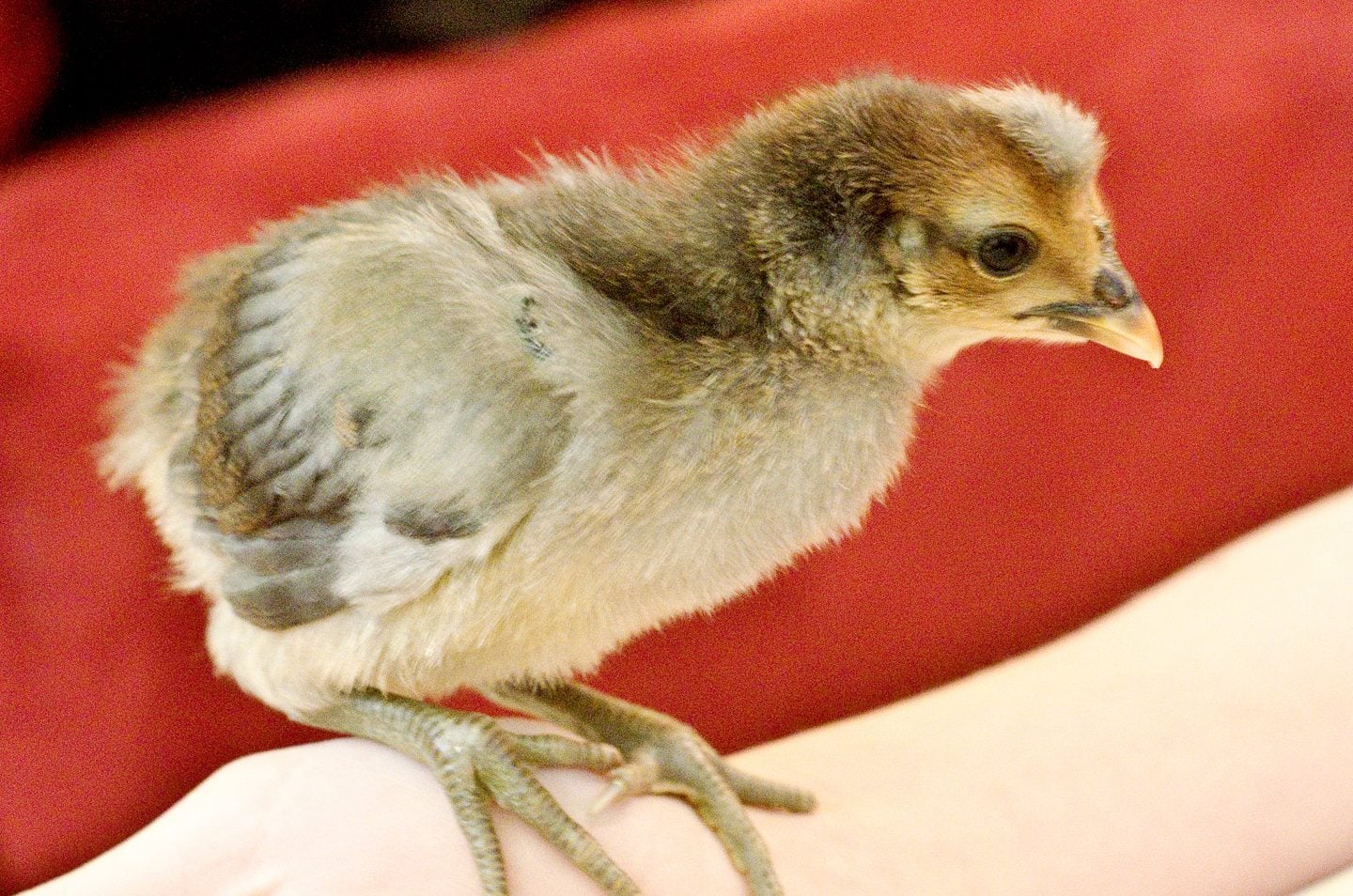 Does anyone know (or can anyone guess) what type of chick this is? We were thinking Americana, but this mohawk that (he) has developed is quite unusual...