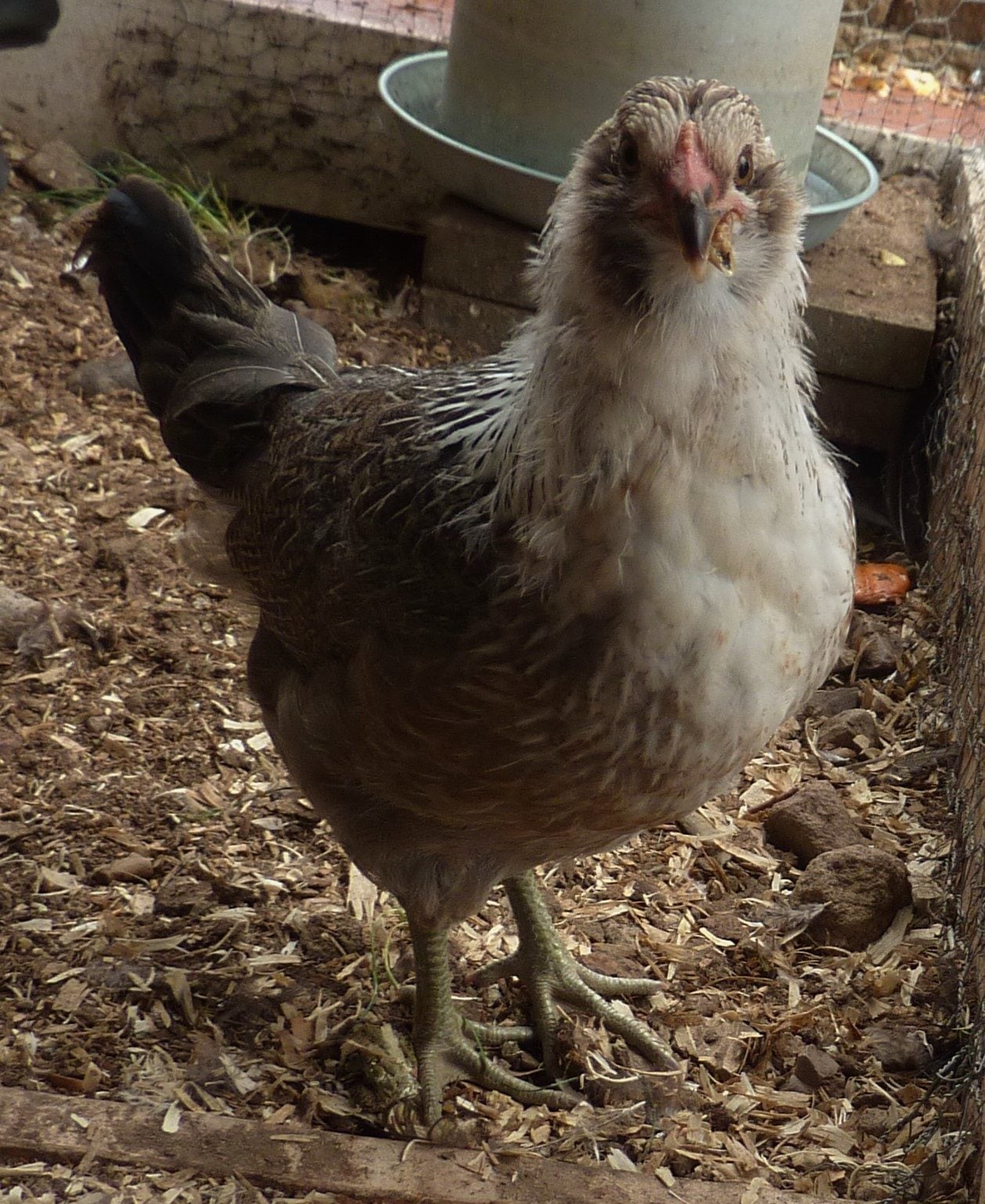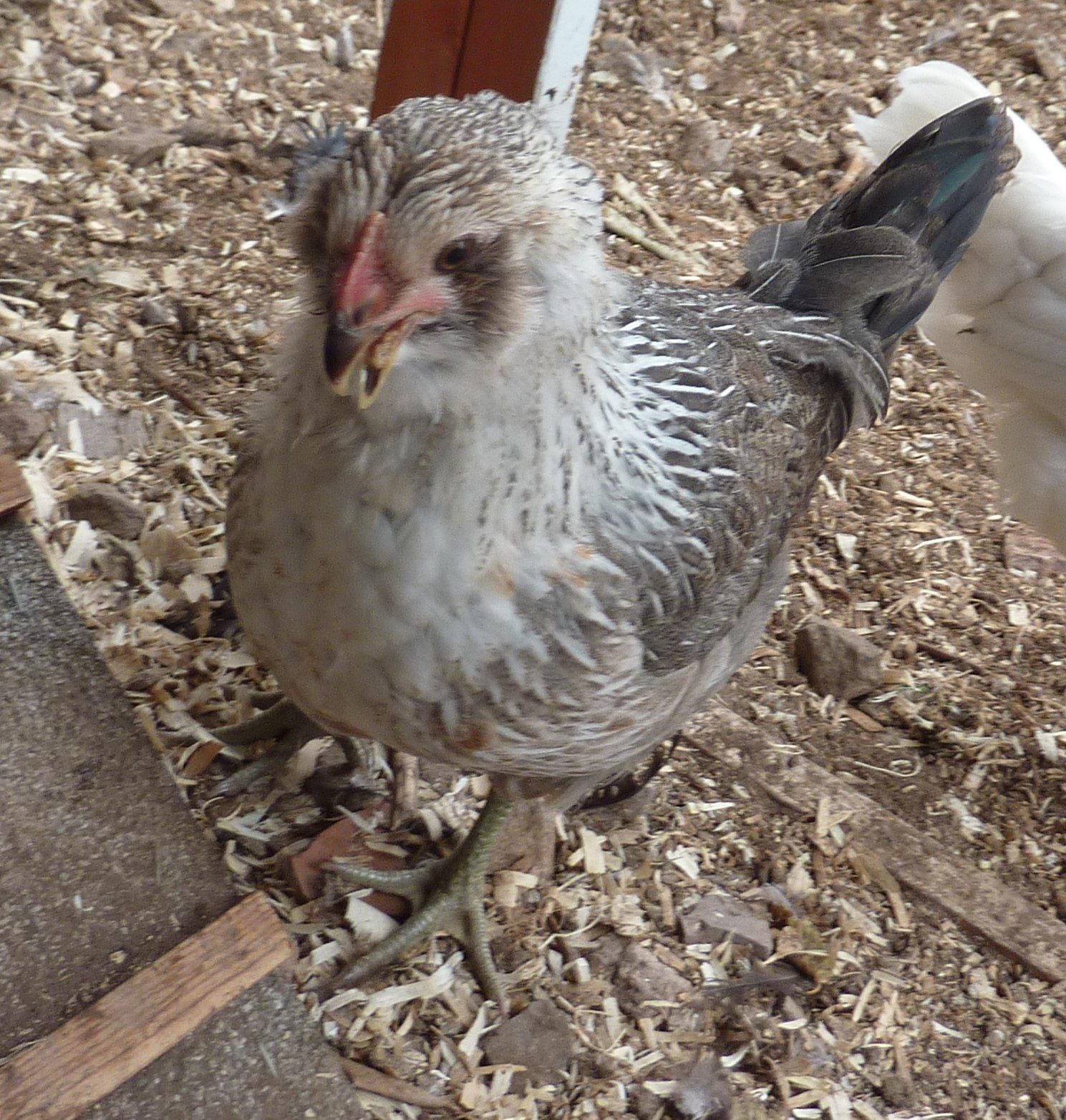 We first noticed the crossed beak on one of 3 Americauna chicks when they were one week old. Being new chicken owners, we had no idea what would happen and how much worse it would get. For the first couple of weeks she grew just like the others. The only difference was that she seemed to eat all day long, voraciously. The angle of her beak seemed to worsen every couple of days. By the time we moved the girls to their large coop and enclosure "Little Bit" was noticeably smaller but no less "flighty" and energetic. It made me sad that the other chicks were enjoying pecking at the ground and running around chortling when they caught a big bug. We fed Little Bit in a deep pan so that she could peck and scratch to her heart's content. When we tried separating her from the flock for a couple of days so that she could eat undisturbed, she panicked so badly that we let her rejoin the others and just kept an eye on her so she would always have a full bowl. The other chicks grew so fast and looked more and more mature but Little Bit stayed small and still looked and acted like a baby. Even so, the other's never picked on her. In fact, when they were still sleeping on the floor of the coop Little Bit would snuggle under them to keep warm for the night. When most of the hens graduated to sleeping on the roost, Little Bit just didn't have the strength to fly up and be with them. One big red hen (that was the same age but 4 times larger than our little girl) always stayed down with her. We tube fed her the last week of her life because she wasn't able to take in enough food. We thought that, just maybe, she'd survive like others we'd heard about. My husband slowly fed her part of an earthworm last week. She actually ran around, showing off to the other chickens before she was able to gulp it down. I let her out of the enclosure to follow me around a few days ago. Her flock mates were quite jealous. It may sound silly, but I just wanted her to feel like a regular chicken. We started to see a decline in her health the last two days. It was like she'd given up. We were going to have to put her down today. Last night we lost "Little Bit", 13 weeks from the day we brought her home. She passed in her sleep under the wing of a wonderful, big, red hen. I have never seen a little creature try so hard to live. I know they're only chickens, but this little gal taught us a lot in her short time here. Never give up.