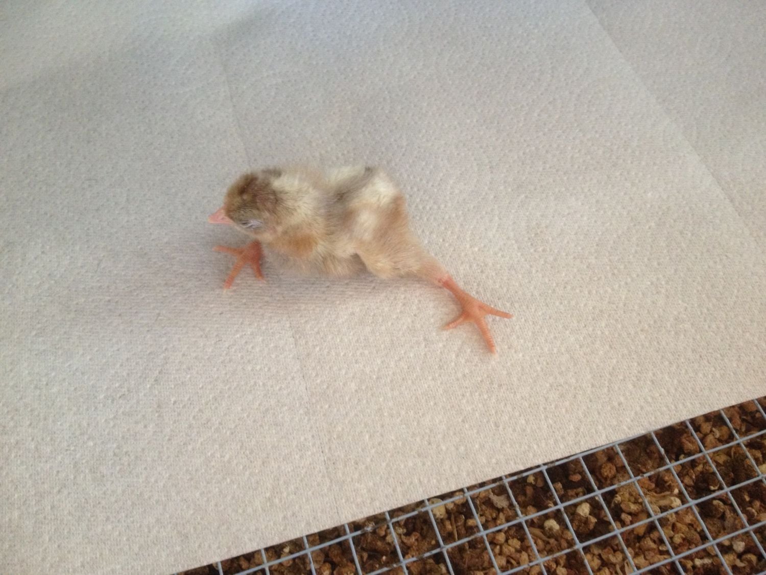 This chick hatched a day early and had splayed legs. I made an artificial egg and put it in the brooder (not incubator) for another 24 hours and the legs are normal now