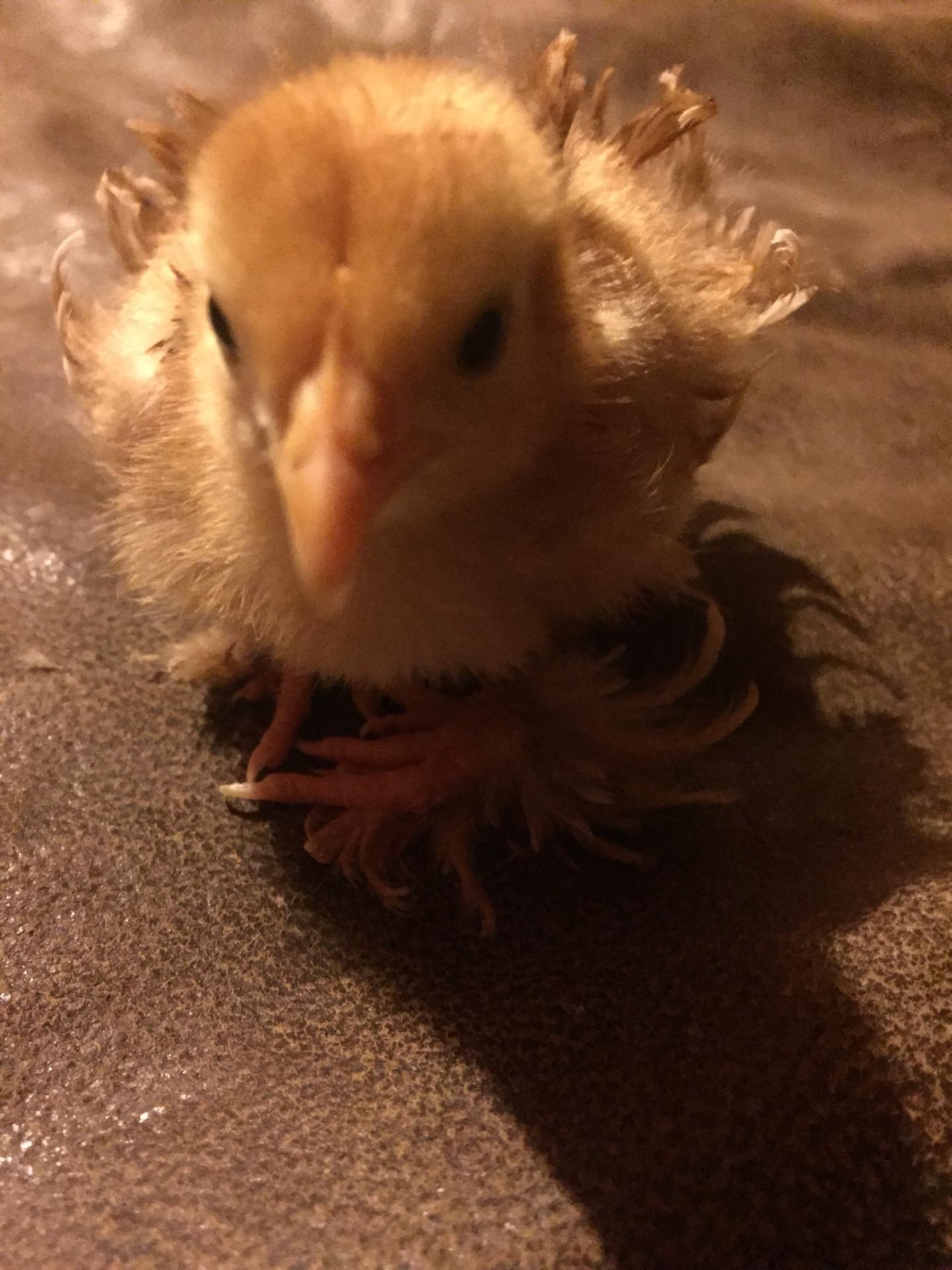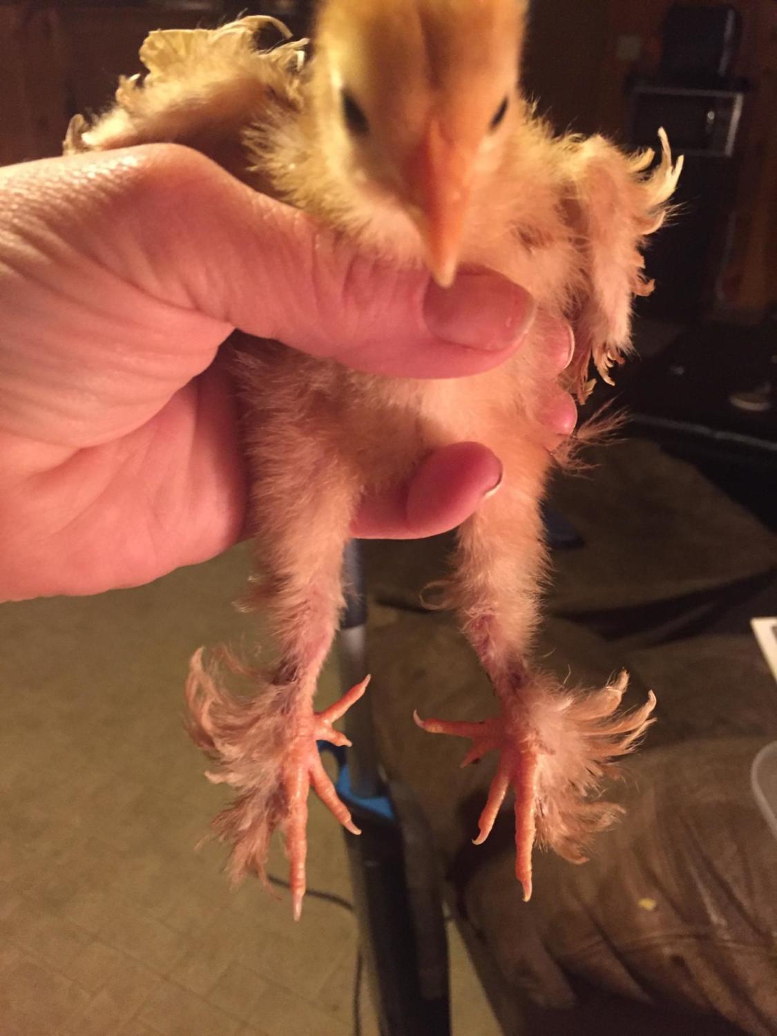 My friend sent me these pics of her frizzle chick shortly before it died. She came home and found it in the brooder on it's back with legs straight out. I'm thinking maybe a vitamin B deficiency...?