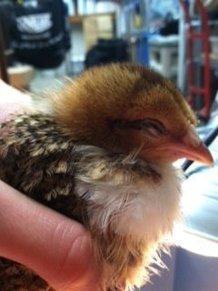 I came home to my Speckled Sussex chick having a swollen eye. We tried wiping it gently with a rag but she can't open it. I am not sure what to do; any advice would help greatly.