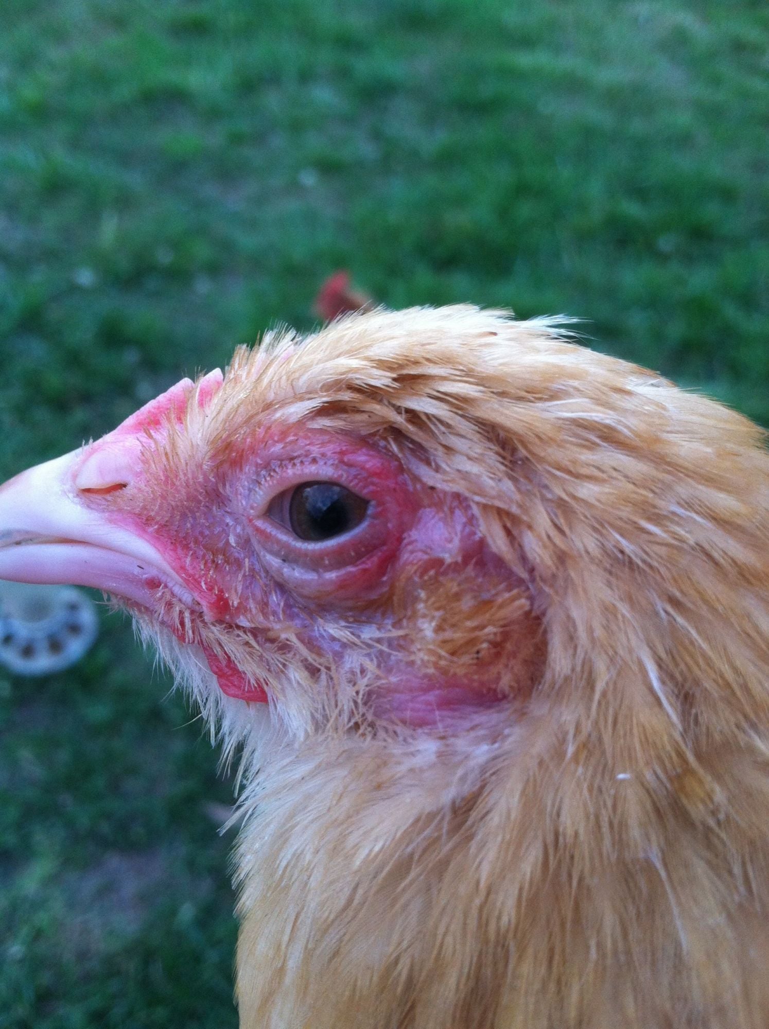 Have you added any new birds recently that might have been a carrier for mycoplasma or coryza, both respiratory diseases? No, but she has just started free-ranging for limited times each day, and my one-year old hens are out as well, but none of them have ever had this problem. She has showed some eye problems in the past, but nothing serious. Has she been pecked or stung around the eyes? Not that I know of. Do you see foam or bubbles in either eye? No, they are both very clear. Dust, mold, and ammonia odors can be irritating to eyes. If there is foamy eyes, nasal drainage, sneezing, or other respiratory signs, you may want to start some Tylan or Oxytetracycline in her water. Tylan 50 injectable can also be given orally twice a day for 5 days. I can give you dosage if you know her weight. Would you suggest me giving it to her without the symptoms listed?