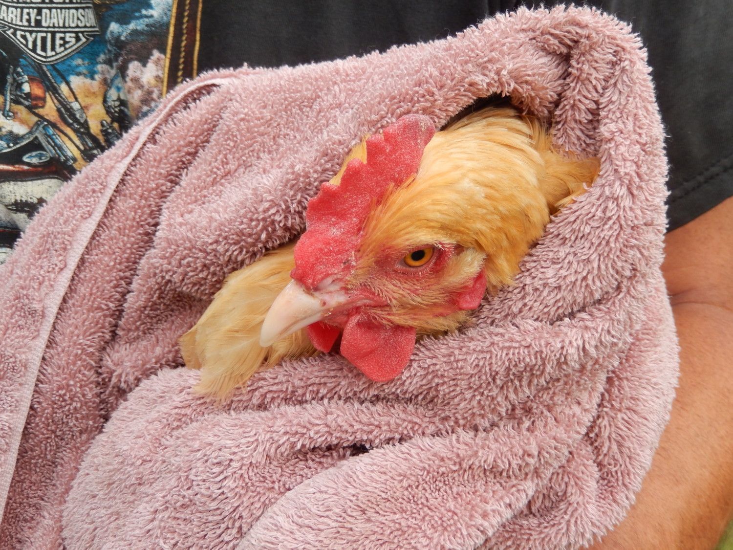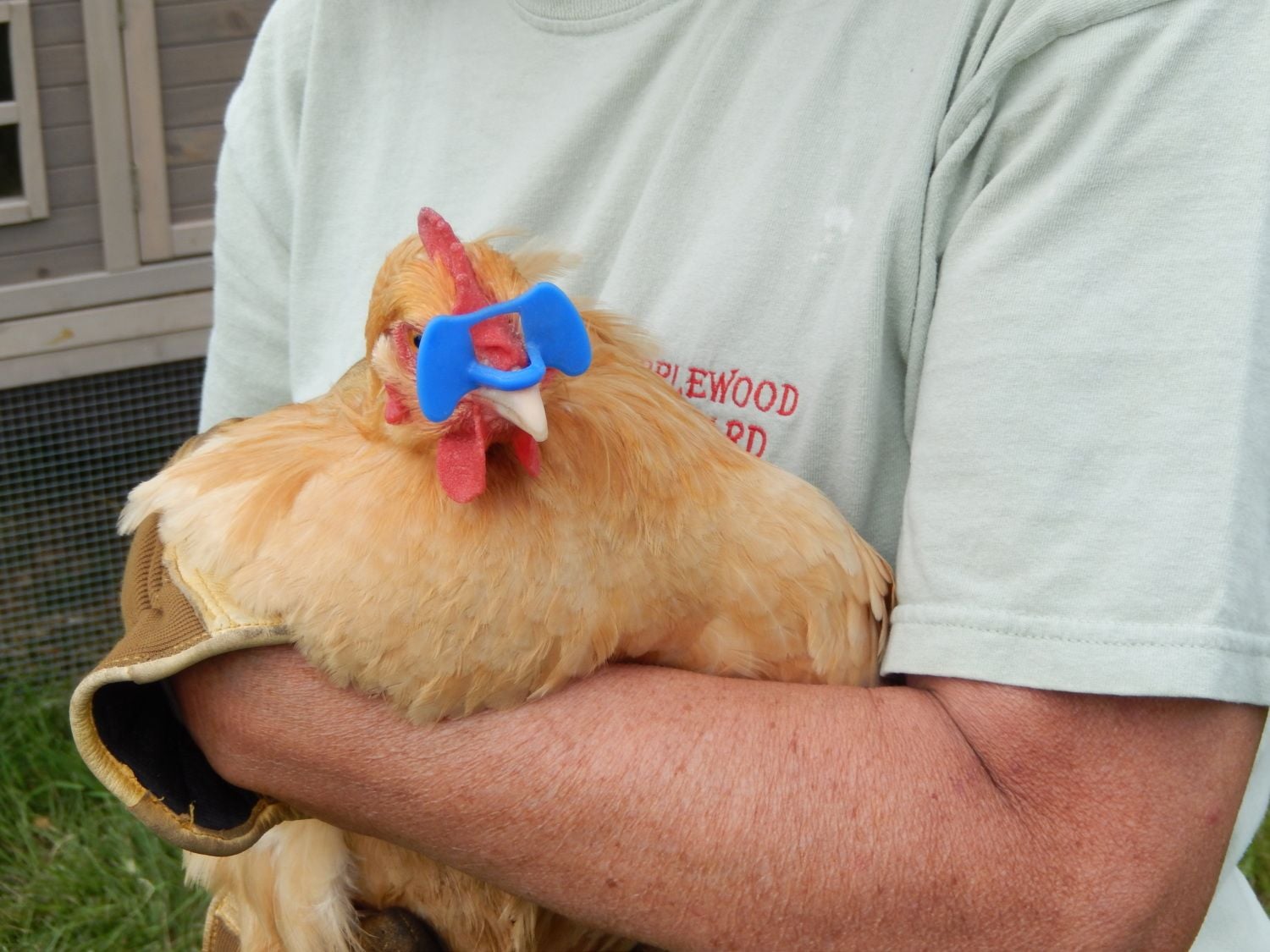 Today we removed the blinders from Henrietta. She did well and it was only a plastic blinder so it came out easily without any bleeding. I hope she is happier now and starts to lay eggs.