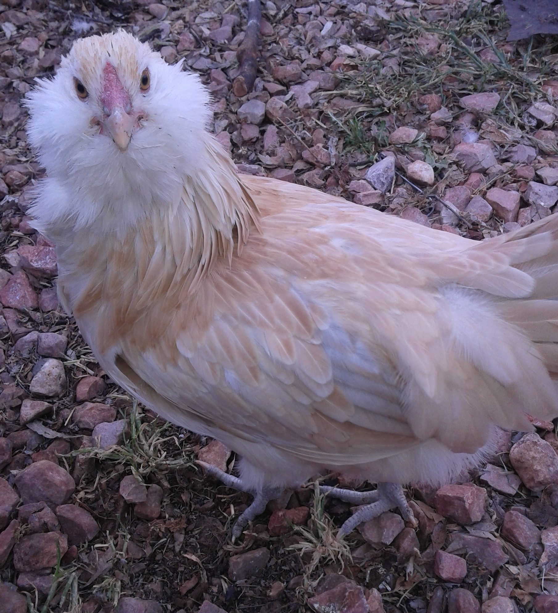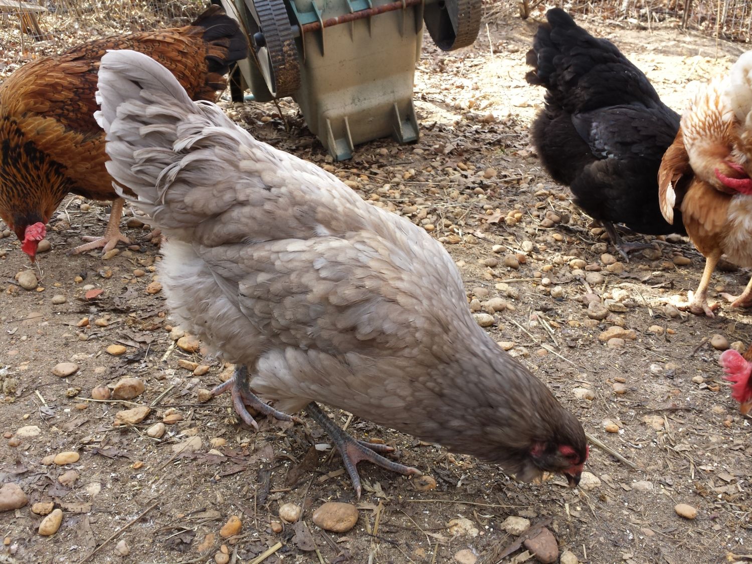 Tonks is a pretty girl, who knows who is digging up the worms, sounds like she is still laying well for her age if she is still doing four eggs a week, that is nice to know.We have a silver Ameraucana who is nearly four years old. She is shy and timid, with us and with her flock-mates. If we do need to catch her for some reason, after we've finally caught her, she is docile. We know never to try to take an egg from the nest while she is on it. The eggs have remained on the smaller side, and she never lays in the winter (she stops when molting in the fall and then doesn't start up again until late March here in southern Wisconsin). She particularly likes to watch me while I'm gardening and waits for me to toss her choice weeds or worms that I've accidentally chopped in two. She always stays at least five feet away from me. Our lone Ameraucana goes to roost about an hour before the other hens. She has never been broody. We used to have two of these birds, and both acted the same (they were raised by the same breeder; probably same parentage). The other one was killed by a raccoon. The eggs, while small and not that plentiful, are wonderfully pretty. She does not lay every day...I would say four times per week (from late March through late September). And here is Tonks:![]()