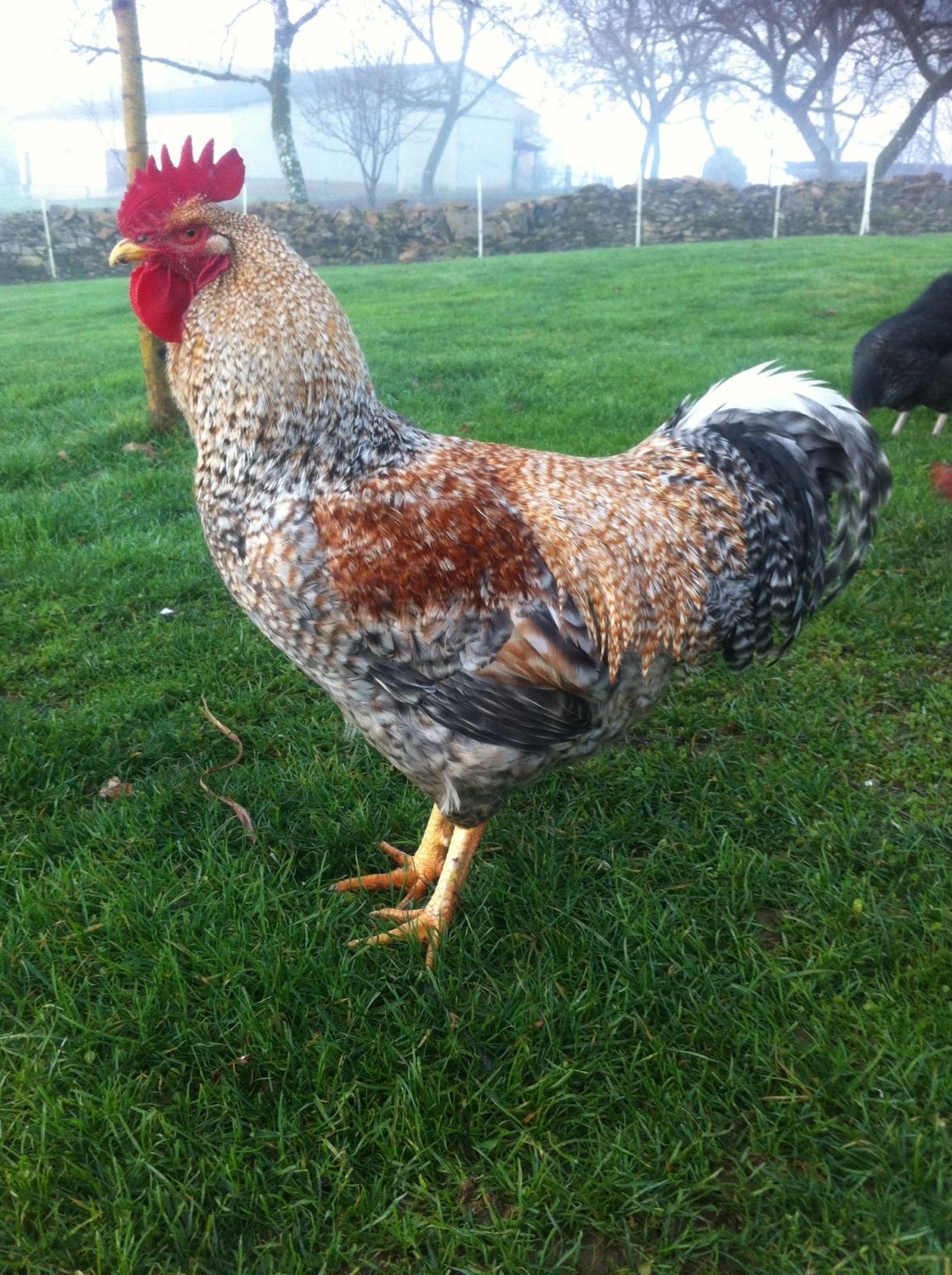 He is also a wonderful influence on the two other roos in my flock (Black Copper Marans a few weeks younger than Ben). He tolerates them really well, and although he occasionally chases them off one of his favourite girls he never really does them any harm - just the odd peck to make certain they know who is boss!
