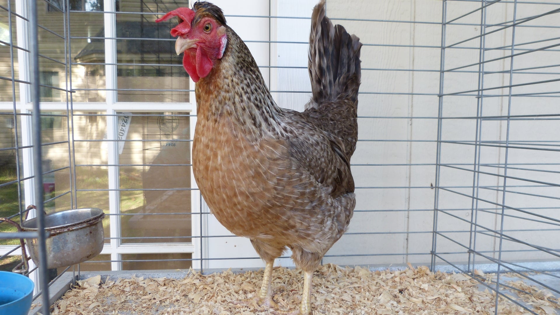 She carries her wings well, over all I think she should have lighter colors on the hackles and the saddle area. She has nice eyes and an excellent shape to her beak.