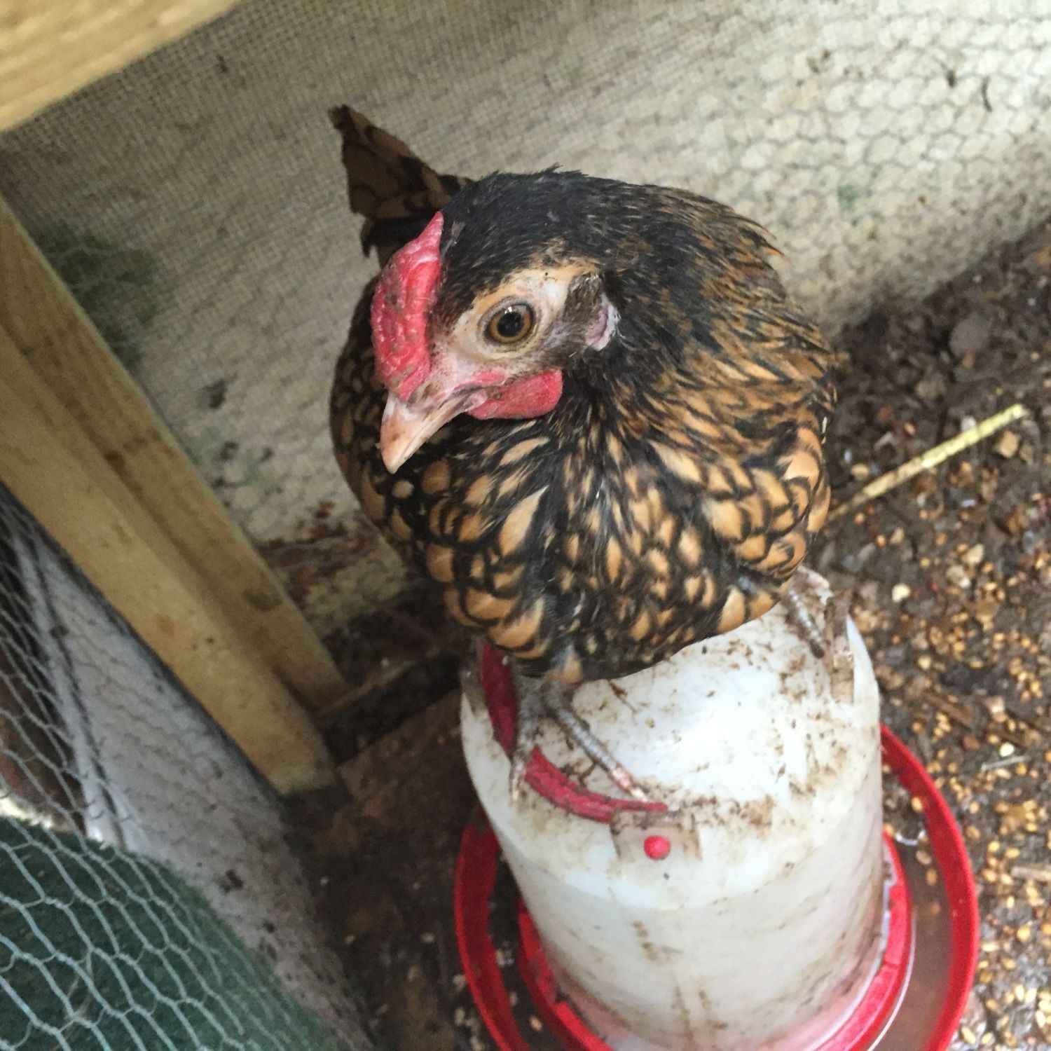 I knew it was getting cold out there! What is my little Sebright thinking?