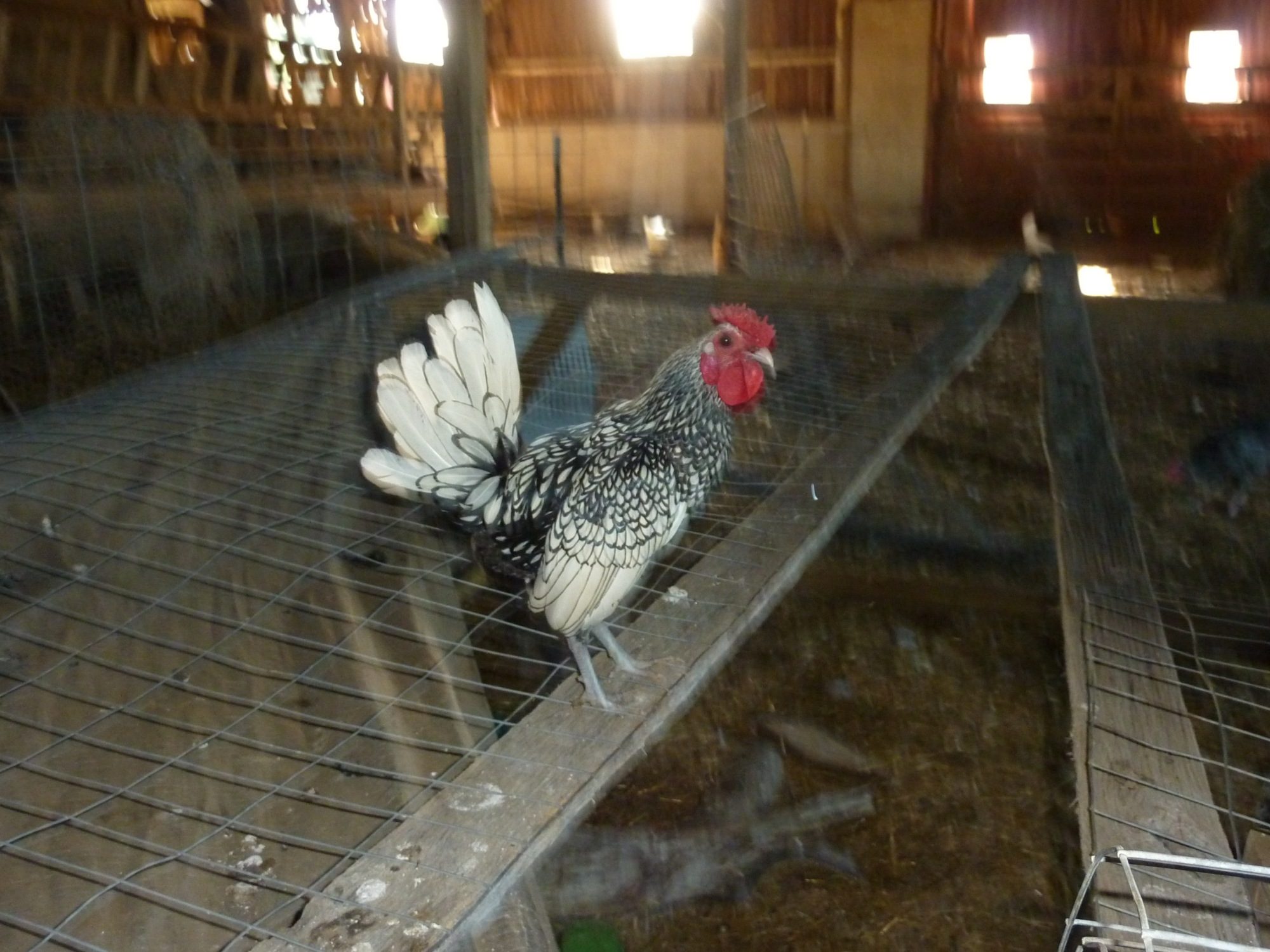 My rooster, Mr. Dottie (silver sebright), was noisy from day one, loved to grow, and was a GREAT breeder. He was aggressive towards me, so we had to get rid of him, but he was the first boy I used in my new breeding project.