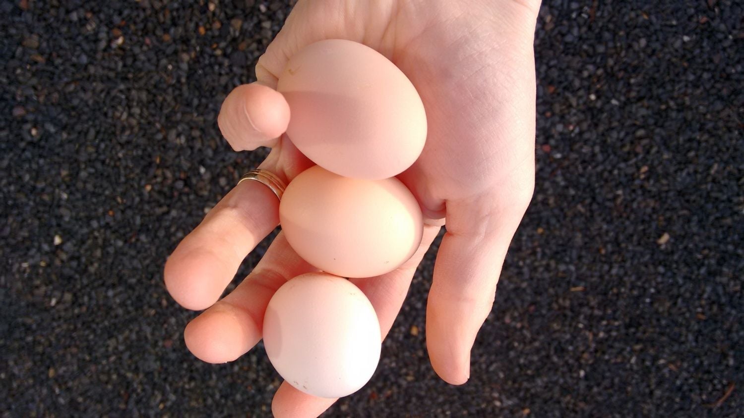 color of egg is brown. Why? Could be several reasons. At one time the brown egg was thought to be more nutritious. Actually, the several varieties of Sussex can lay an egg from pale tint to a medium rich brown.