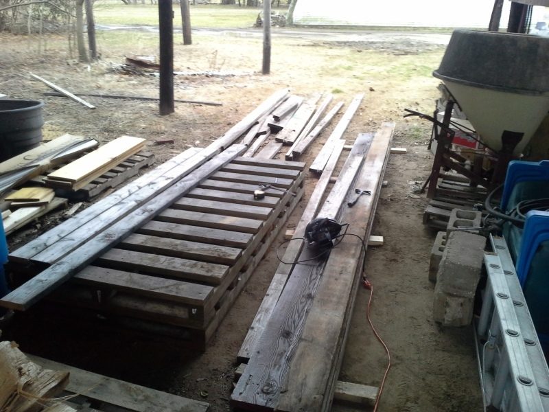 When we bought the place it came with a few boards scattered about from an old pole barn. Some metal roofing from the barn was scattered about as well..