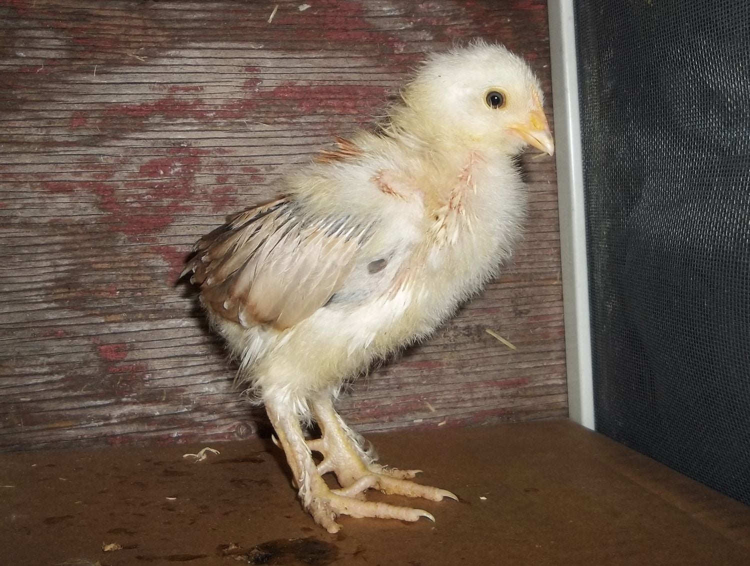 Bonquesha was named by my teenage brother of course. We all enjoyed a good laugh when she was eating her crumbles and stuck her whole head into the opening of the feeder. I was very concerned she would get stuck with it like that, but after a few seconds she recoiled and went back to eating food like a regular chick.