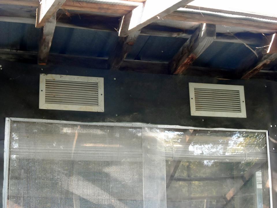 Vents...windows covered with hardware cloth. the entire outside of the coop is covered in heavy black rubber to keep drafts out.