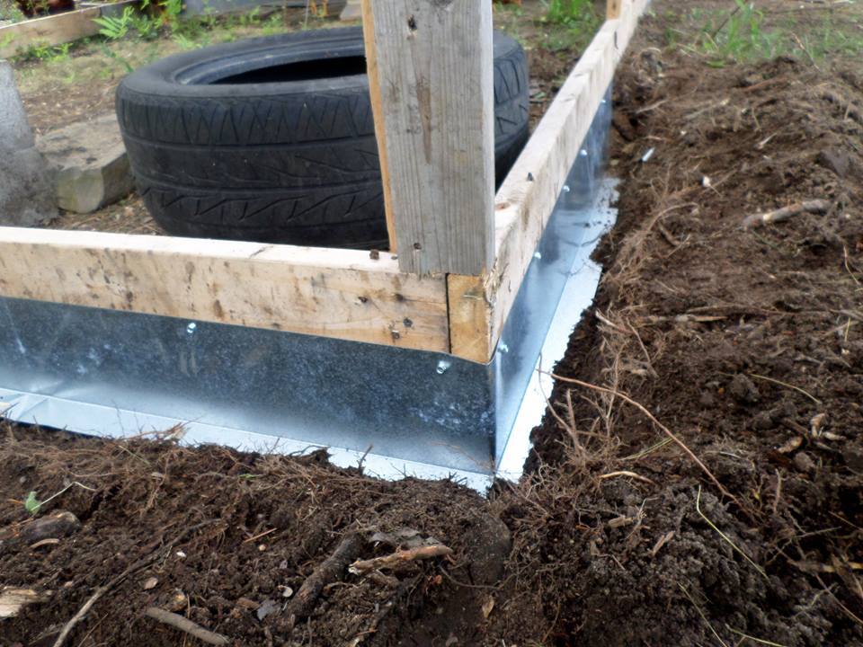 10 inches of sheet metal buried along the perimeter, with the last 2 inches bent outward