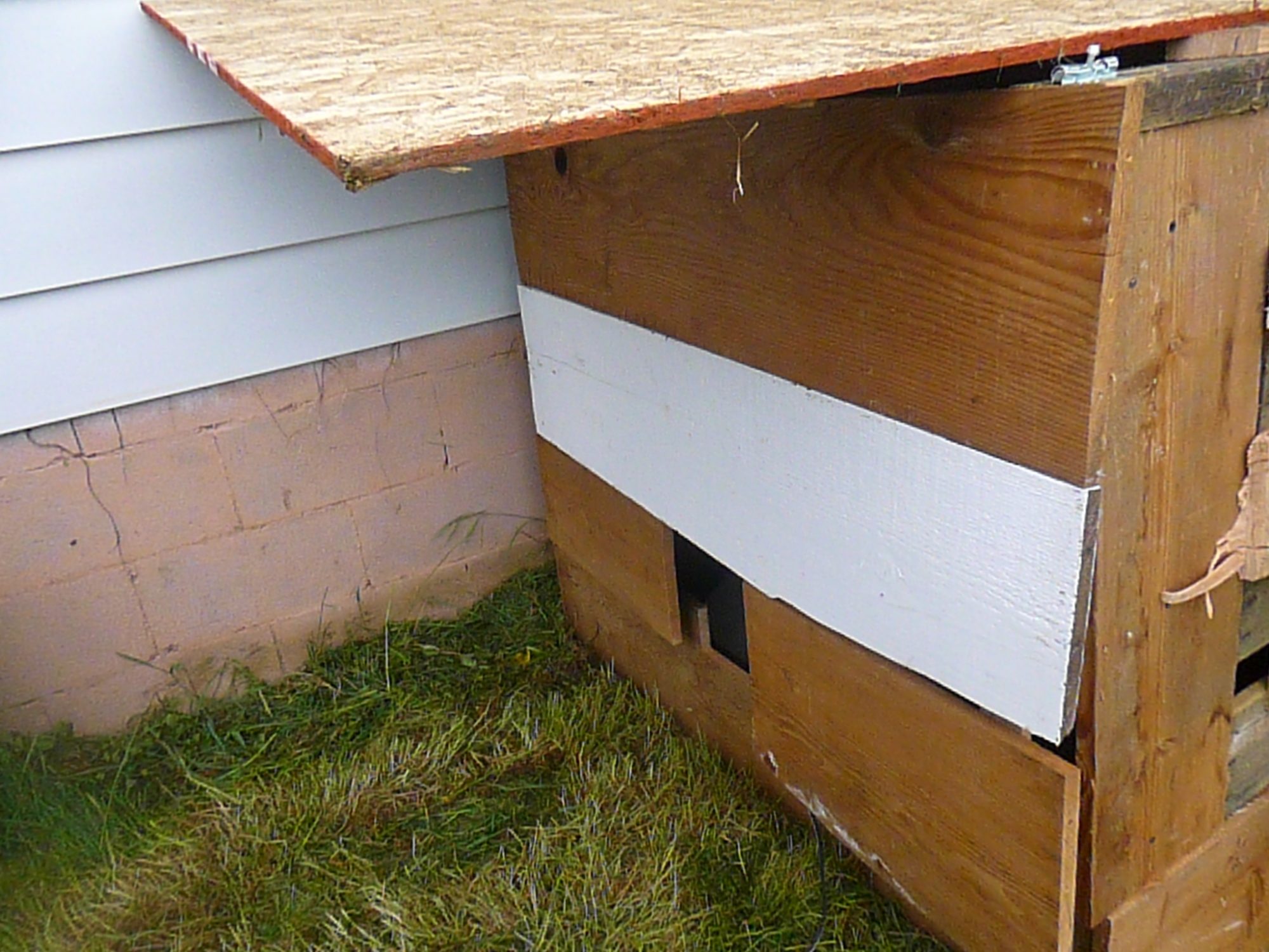 One of the corners has a section for putting the pcv/pipe auto feeder to run down it. I have three walls now, though I dont have a picture of that yet. Making a nesting box and installing that tomorrow and working on the door as well. We'll see how it goes from there.