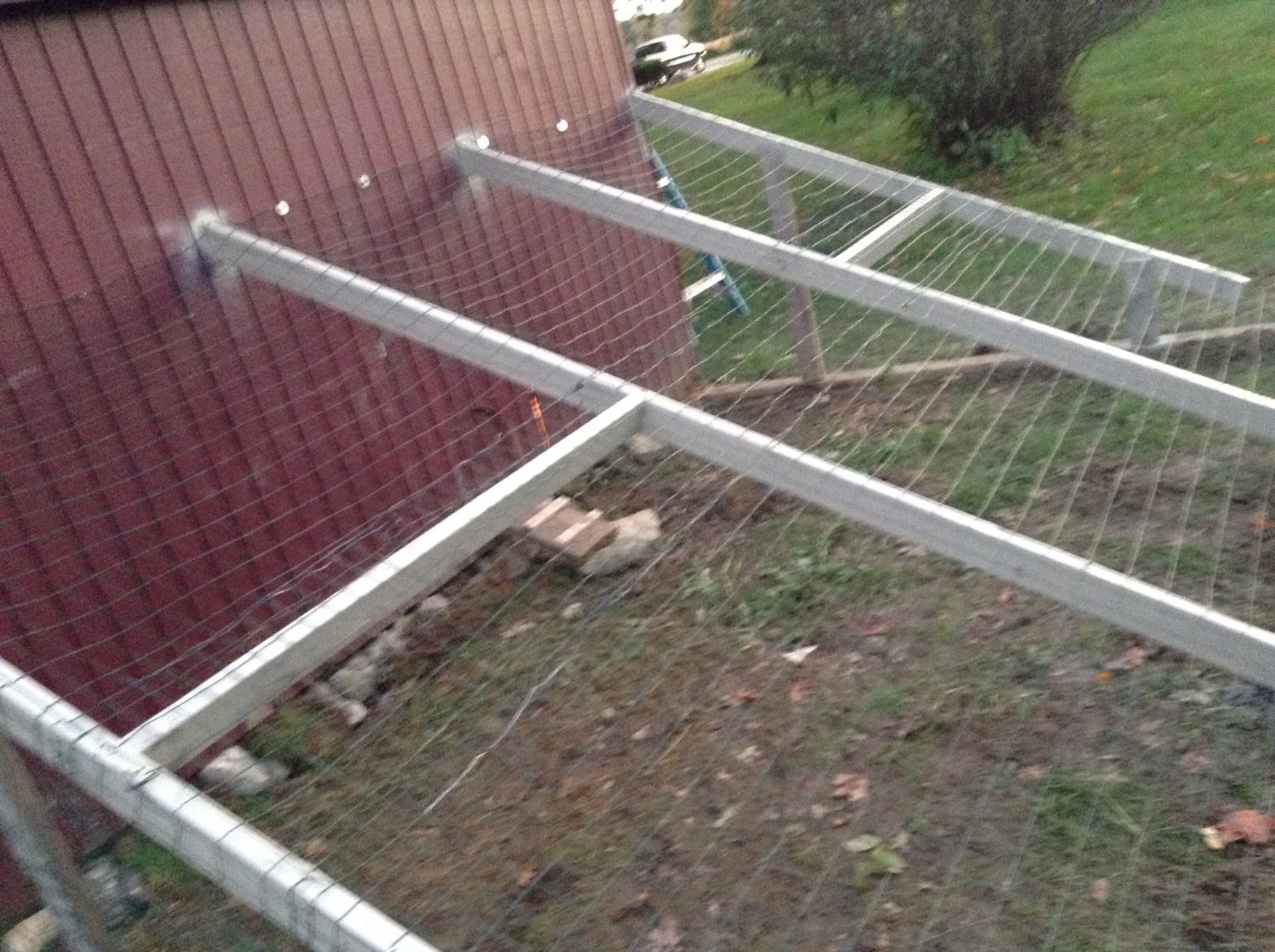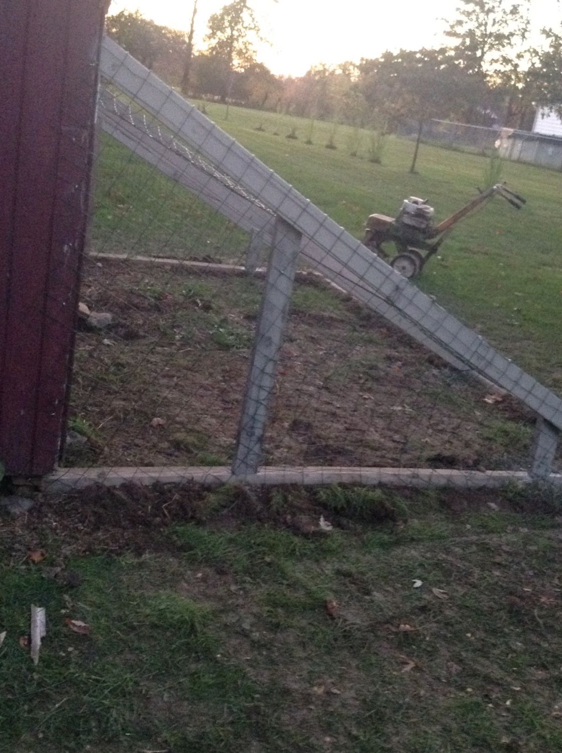 My boy talked me into getting some chickens from Rural King back on sept 9. While most people would probably prepare an area then get the chickens ...not me..LOL.. i sometimes put the cart before the horse. Any how the chicks spent their fist night in my son's room in a pet carrier. From there they went into a brooding area... They got pretty big in the last month. We figure they were most likely a week old when we got them so guessing they're about 5 weeks now. Anyway I knew I had to either make a coop or buy one. The prefab pens for 3 to four chickens just seemed so small yet kinda pricey so we decided to just make our own. The area pictured is 4' by 7' and will serve as the coop