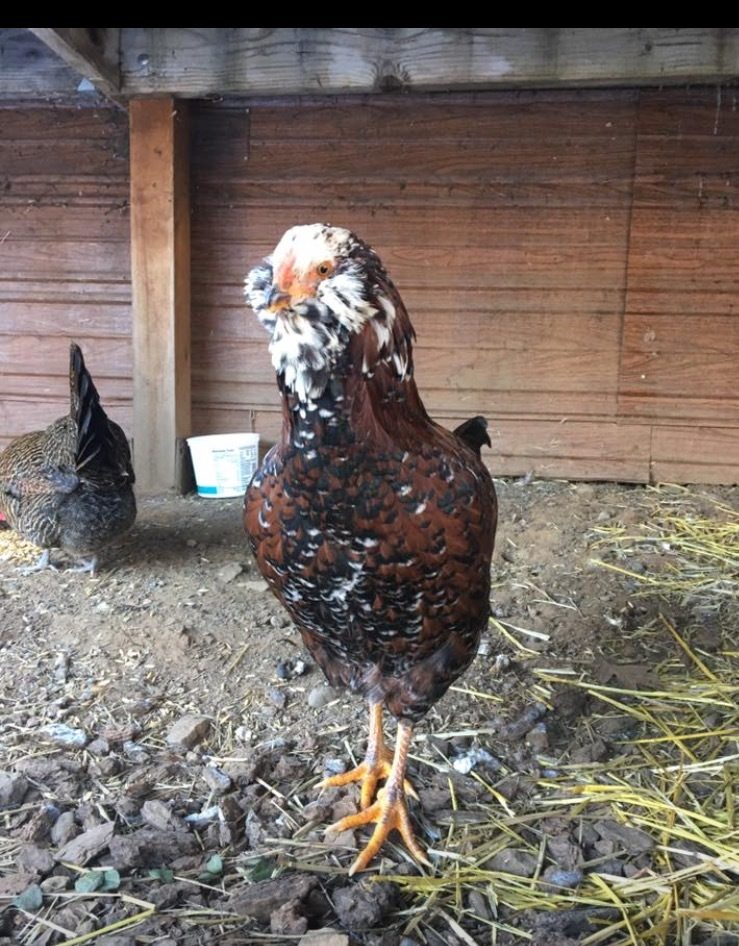 I've got 1 appenzeller spitzhauben, 1 golden campine, 1 EE and our little Russian Orloff!