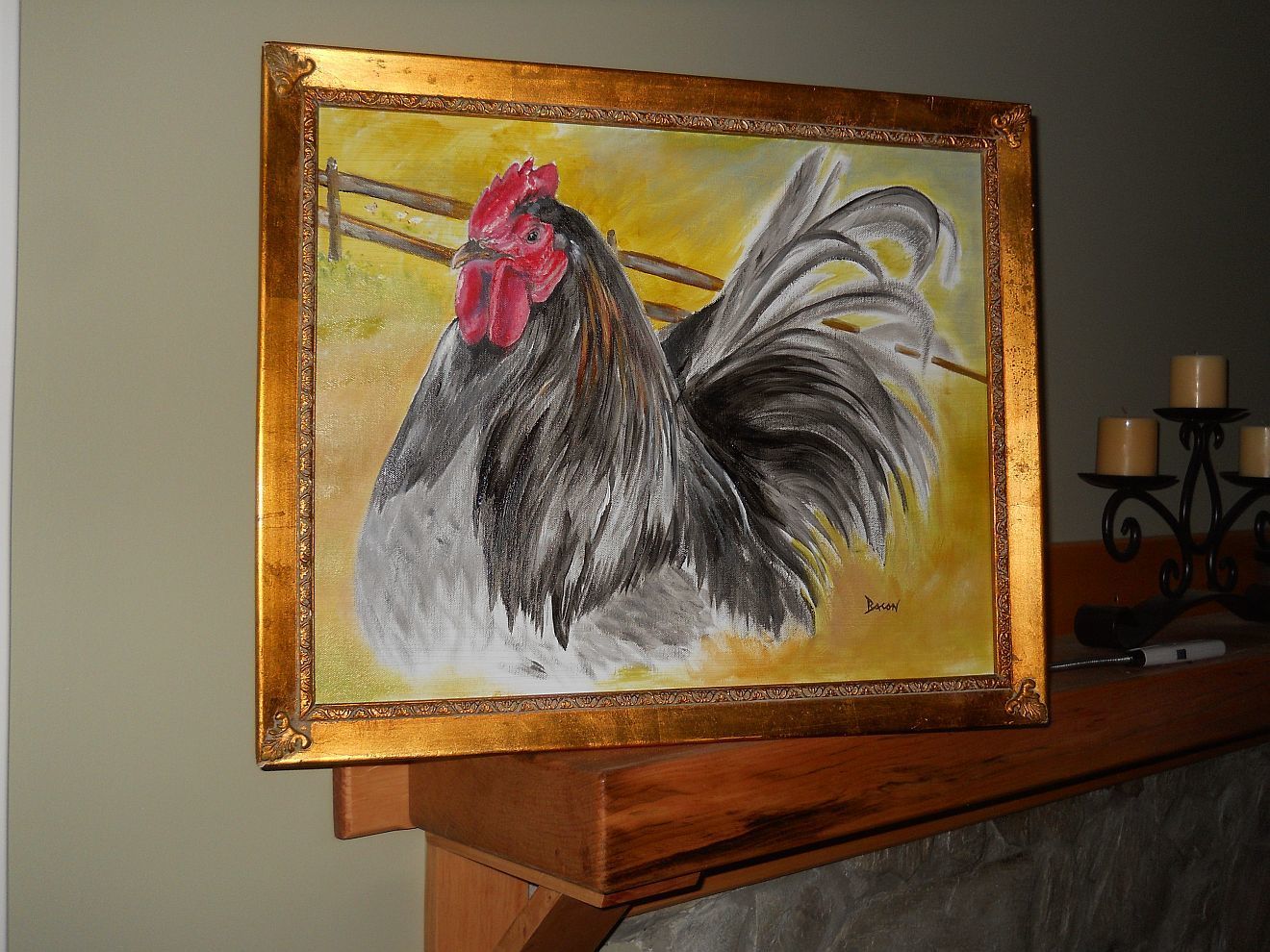Thanks, Debby. Yes, that is the painting I cropped to use for my avatar. After the year of mourning for my boy, I put his grandson, Atlas, up there. Sure miss Isaac. That painting is on the wall next to my side of the bed. Over my desk is the pencil drawing that our young member, Symphony, did of my Suede and another one is a pen and ink drawing of on of my late SLW hens, Violet, done by Seachick's daughter, Olivia. (I hope I got the name right, it's been a lot of years now). I love my chicken art.@speckledhen