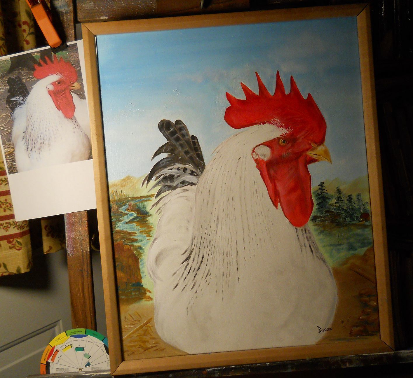 Thanks, Debby. Yes, that is the painting I cropped to use for my avatar. After the year of mourning for my boy, I put his grandson, Atlas, up there. Sure miss Isaac. That painting is on the wall next to my side of the bed. Over my desk is the pencil drawing that our young member, Symphony, did of my Suede and another one is a pen and ink drawing of on of my late SLW hens, Violet, done by Seachick's daughter, Olivia. (I hope I got the name right, it's been a lot of years now). I love my chicken art.