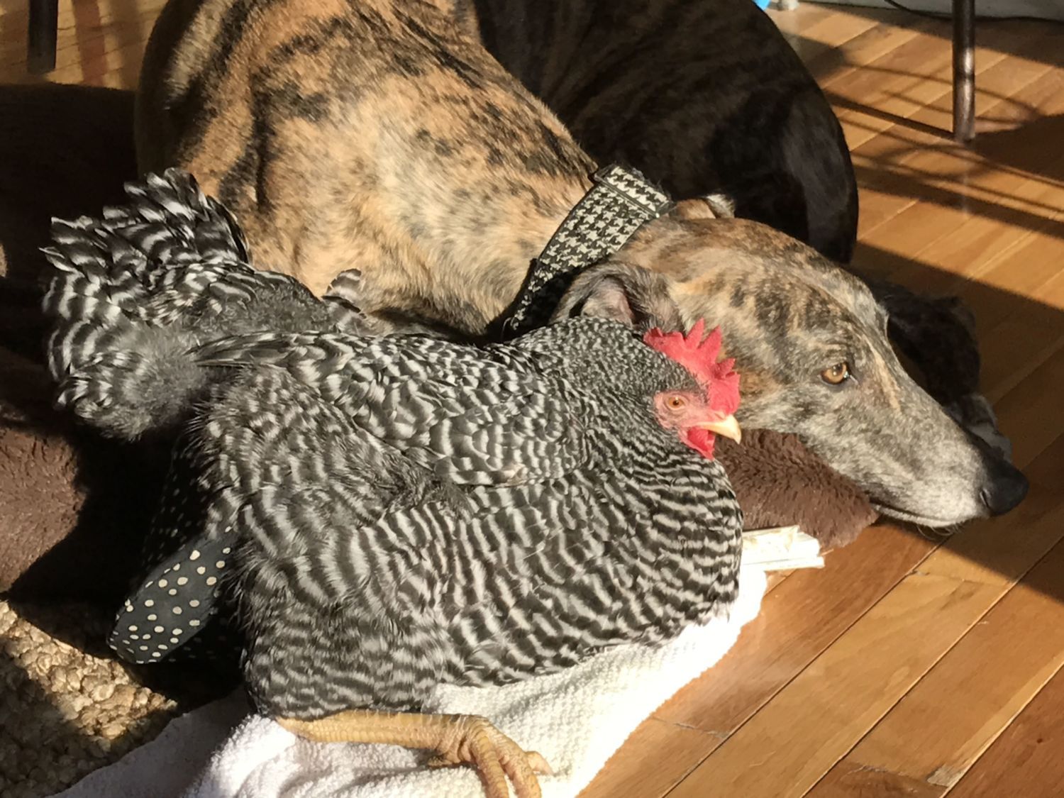 oh, I love it! My 6 week old house chicken hates the diapers. She just runs backwards and shreaks. It honestly hasn't gotten better. She might have to be an outside chivken. I can't have her pooping everywhere. We just love Maleficent so well. She is the most people friendly of my 6 chicks. I'm bummed. I want a house chicken like you have.I have a "house chicken" right now. I have 2 different diapers for her. The newest one from My Pet Chicken isn't so great- the inside isn't vinyl like the older style so it isn't easy to clean. She goes outside during the day during nice weather when I can keep an eye on her (she gets chased and picked on). But she will run up to the house and wait by the door to come back inside. The diapers have been great for her honestly...she got used to them quickly. She loves to spend time with my husband and I and the dogs...especially when I am prepping dinner (she waits for scraps like the dogs) and she likes to lounge on the couch while we watch TV. She was injured and I spent several hundred dollars getting her better....so if she needs to live in my house, then I am okay with it. She has a pink diaper and a black and white polka dot diaper =)![]()