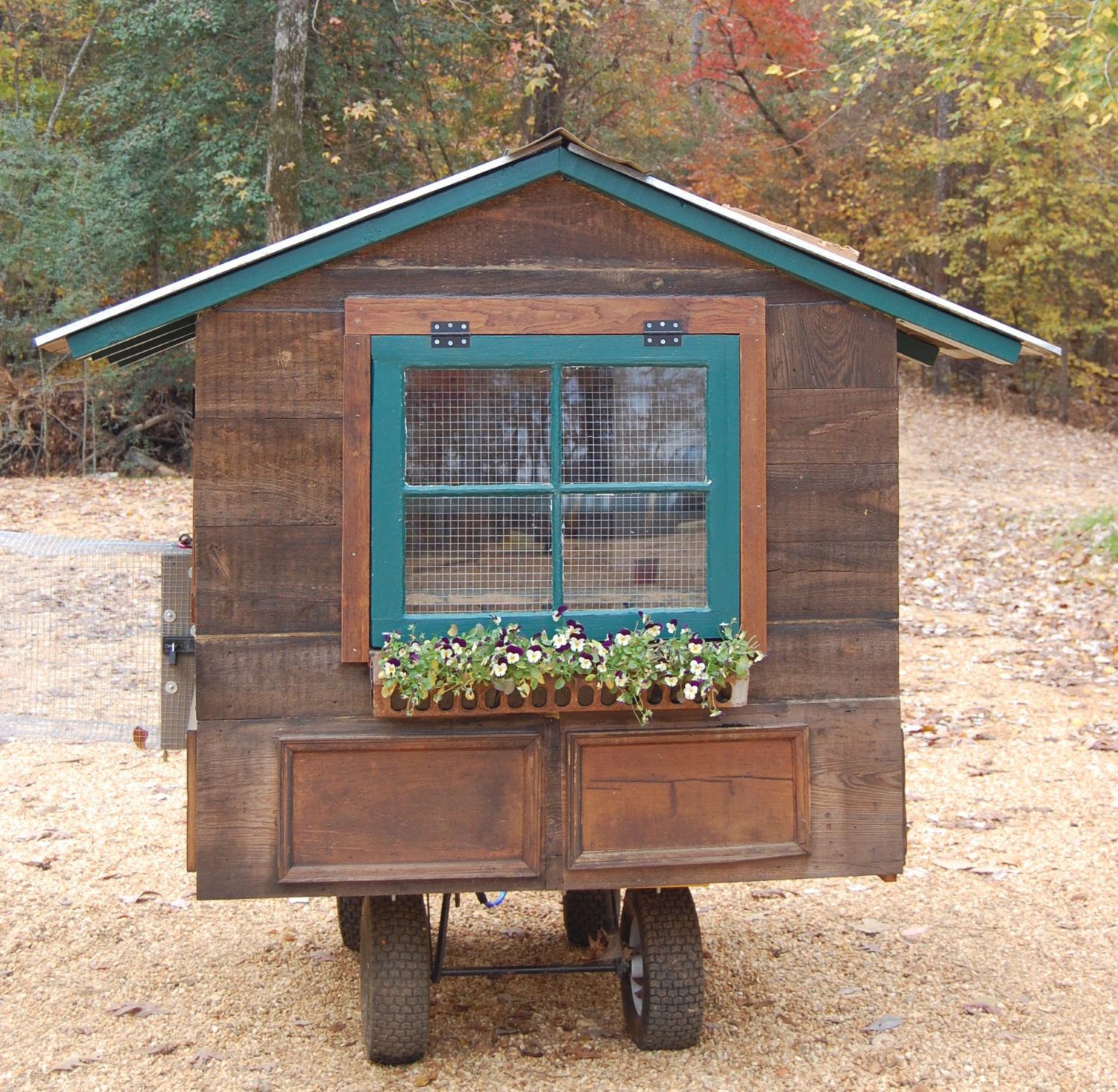 Well, one of the reasons that it took me so long is that I live in the woods. Finally, between this website and my mother's gift subscription of Backyard Poultry, I decided to take the plunge. I bought a used garden cart and started building a coop on it, with some help.