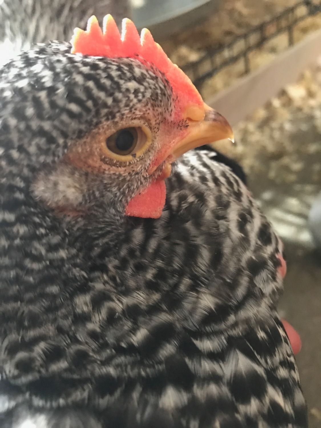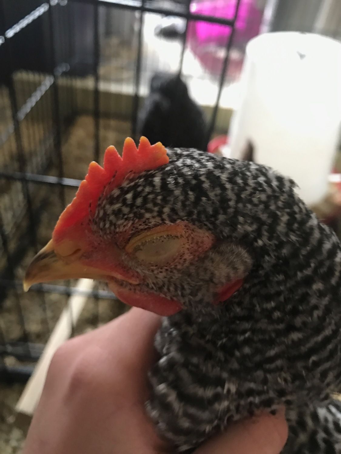Also, her other eye (the "good eye") has a problem. It looks as if it has been "turned" in the socket, revealing flesh. Is this normal? None of the other chick(en)s have this!