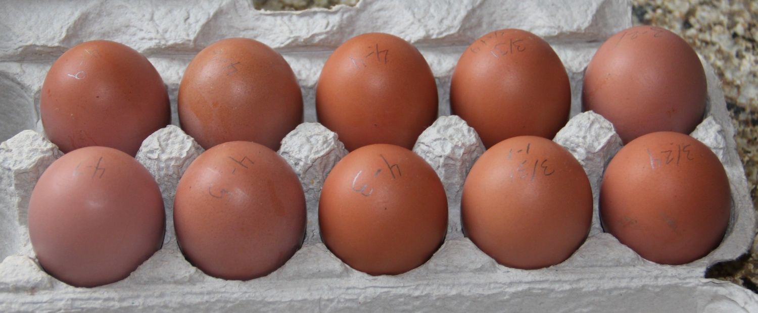 and 12 (2 more than the picture) of a BCM mix- My hen is a BCM x BR mix, mated back to the BCM rooster. I'm hatching these for my eating egg sales and not for hatching eggs.