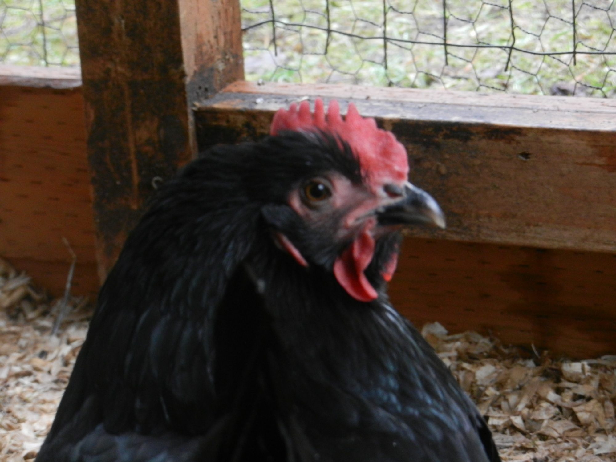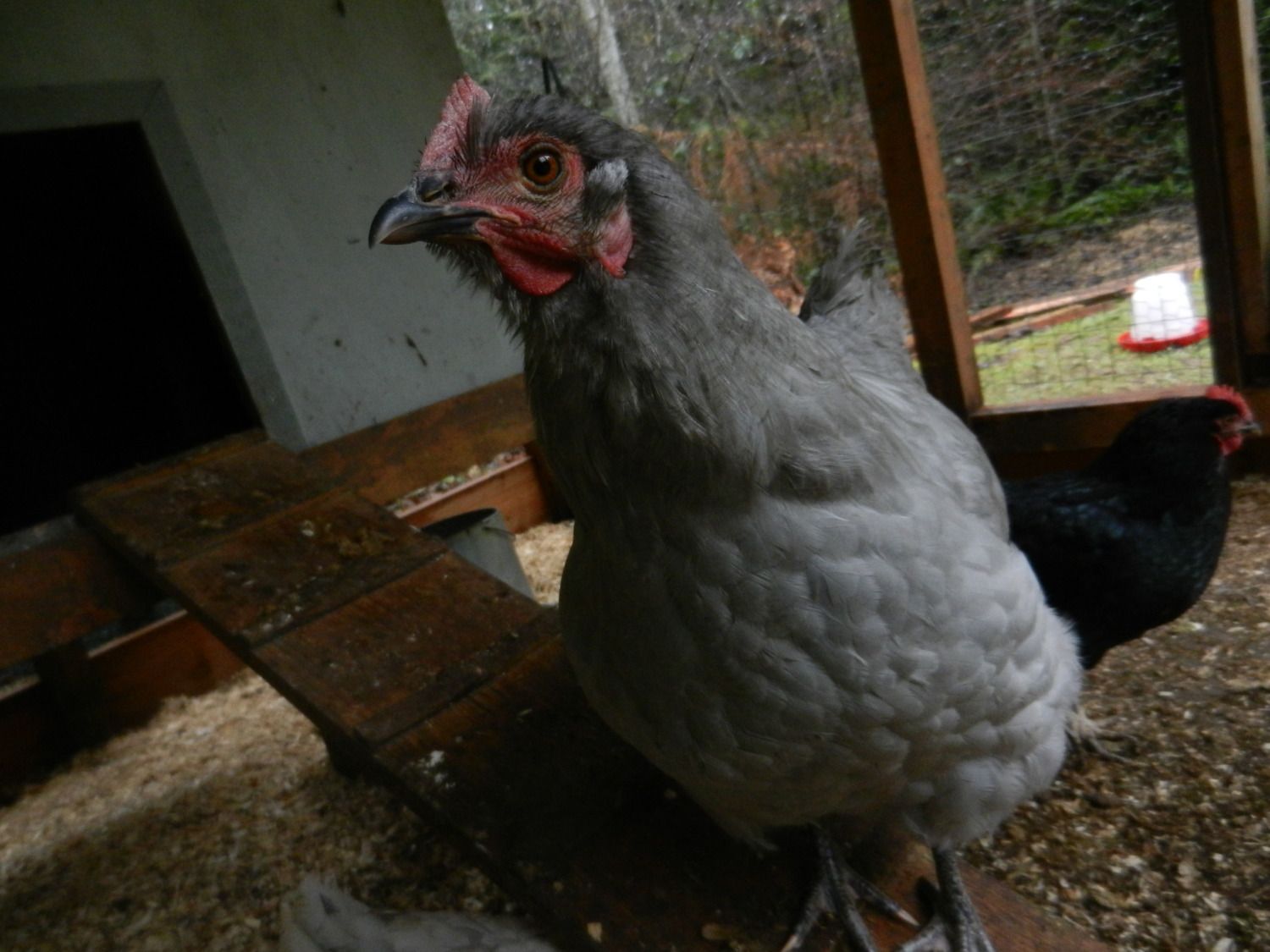 My favorite Buff Orpington, Mona guarding the top of the ramp. The henhouse design is modeled after my own coop with a few details missing.