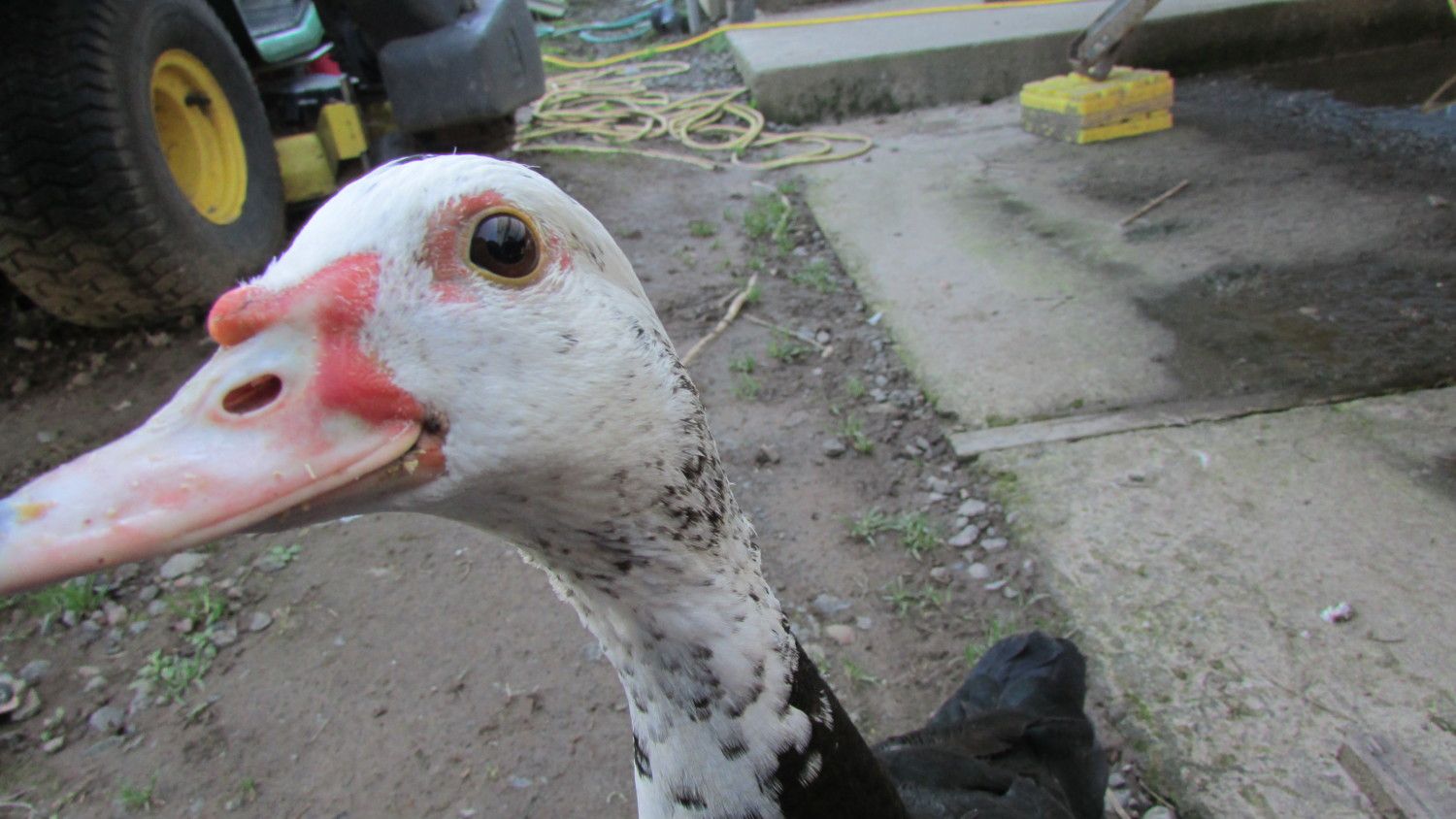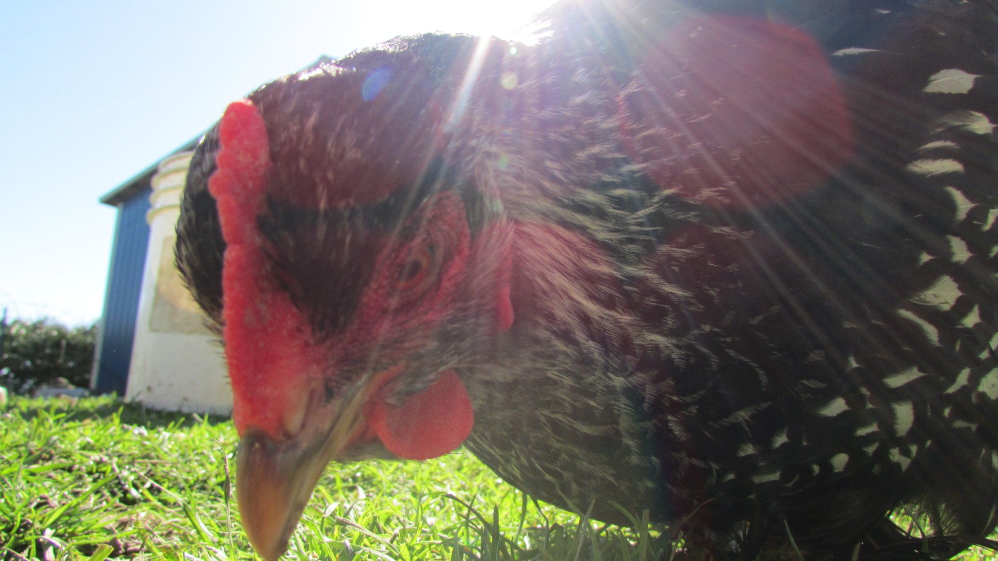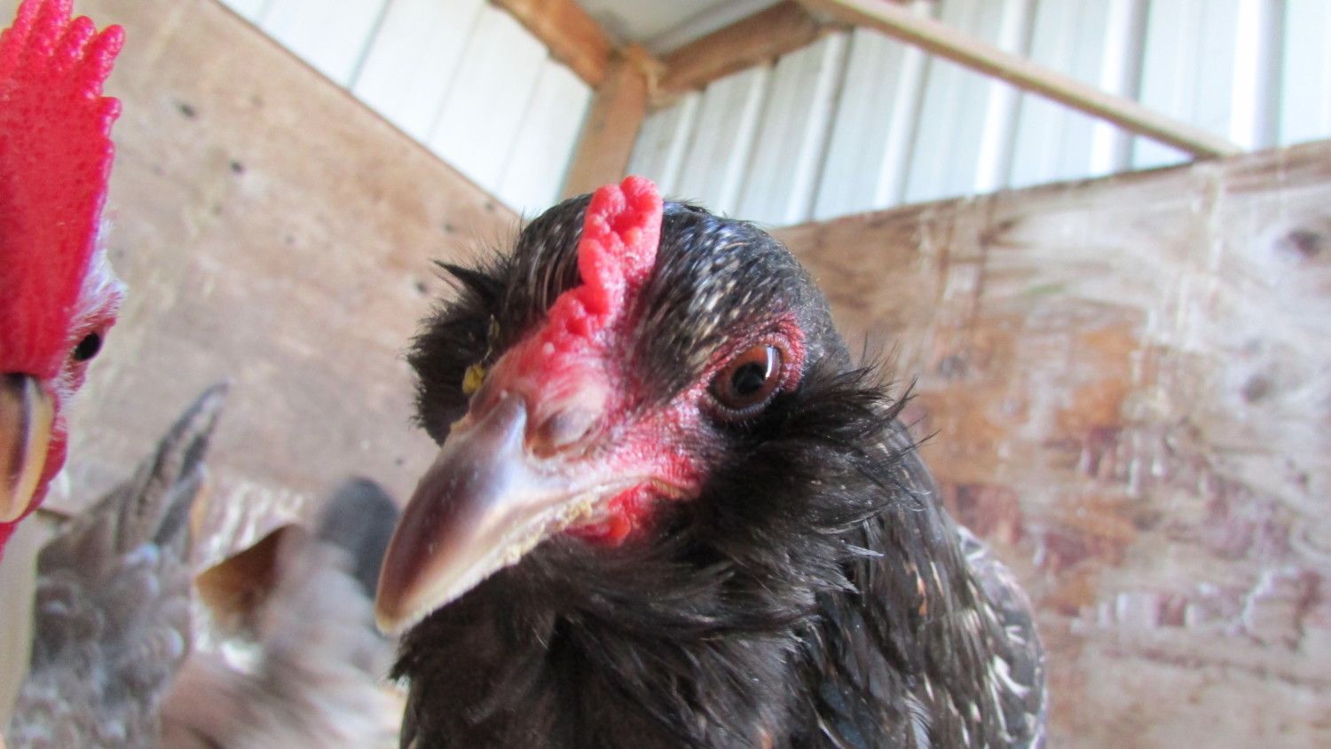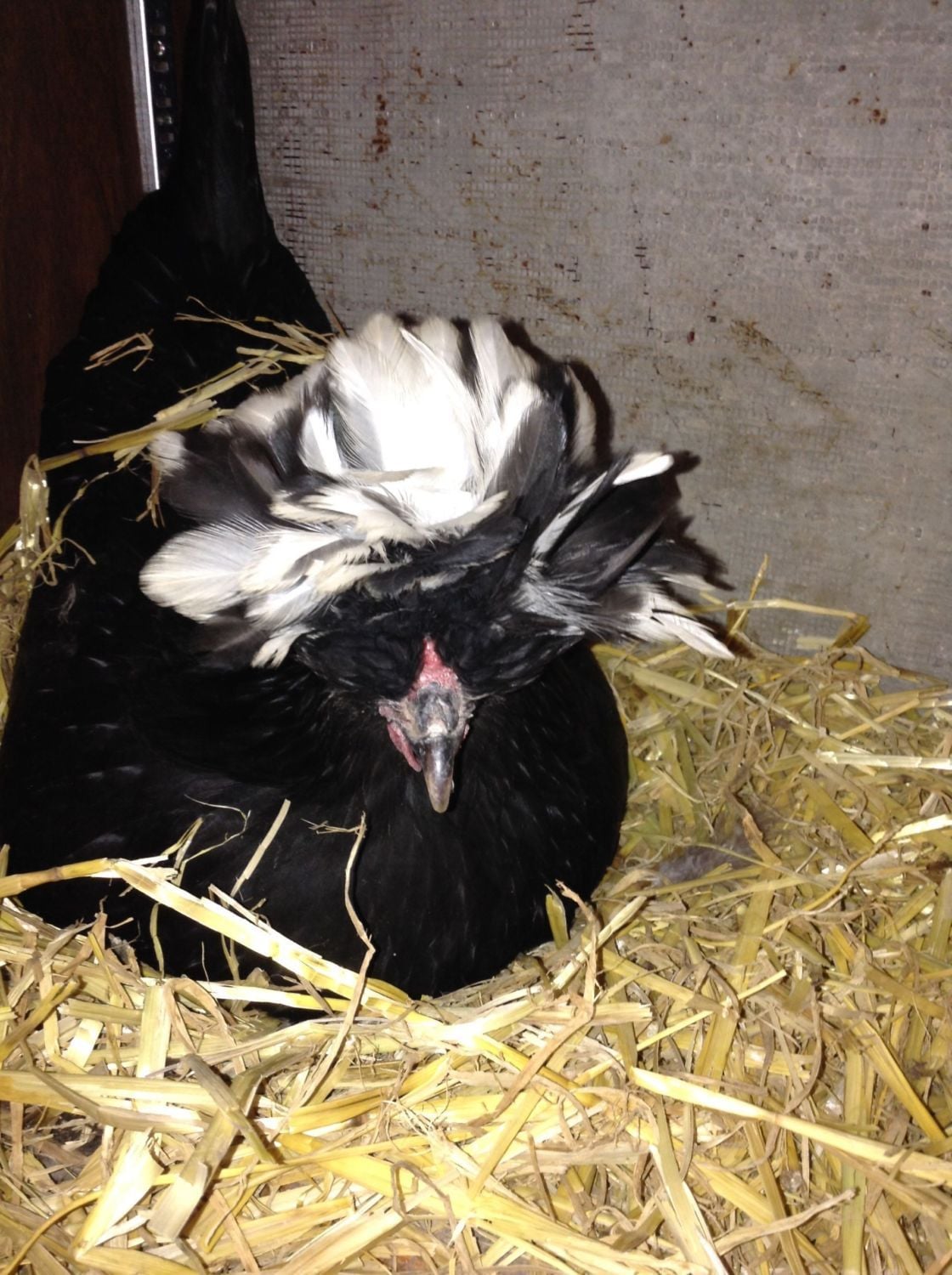 Either Thelma or Louise, my mom's Easter Egger hen. :) She was supervising me as I cleaned the coop... ;)