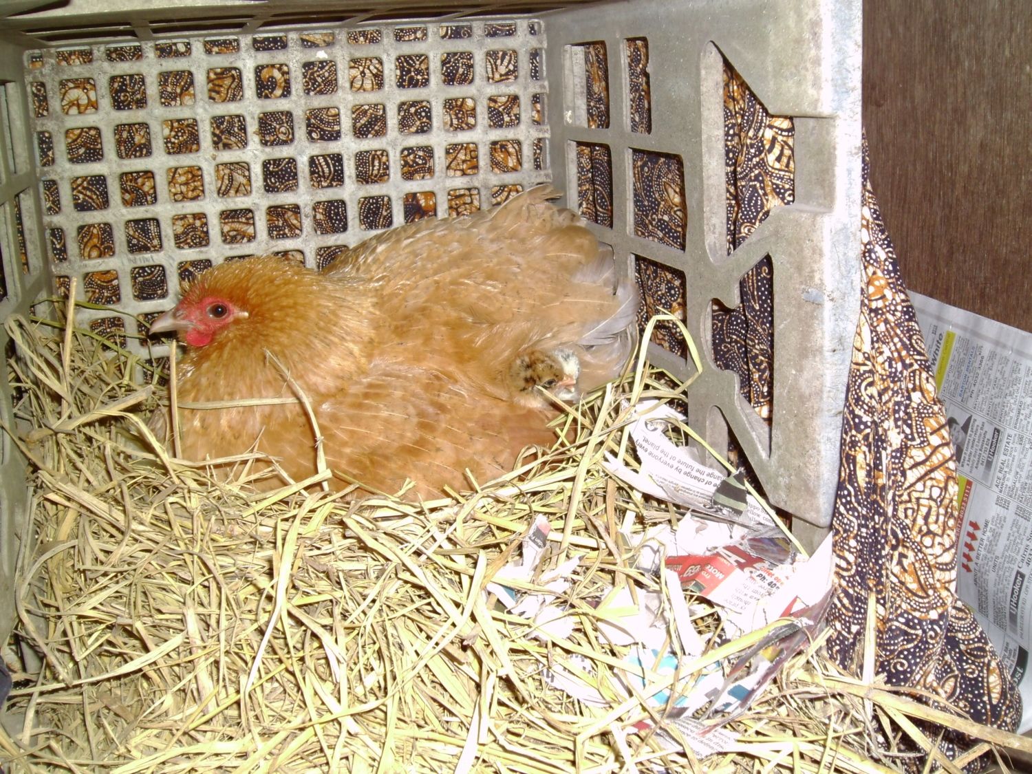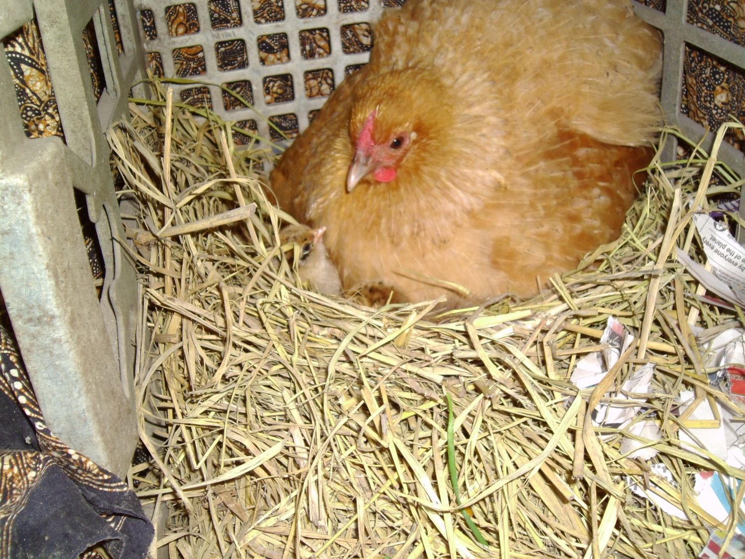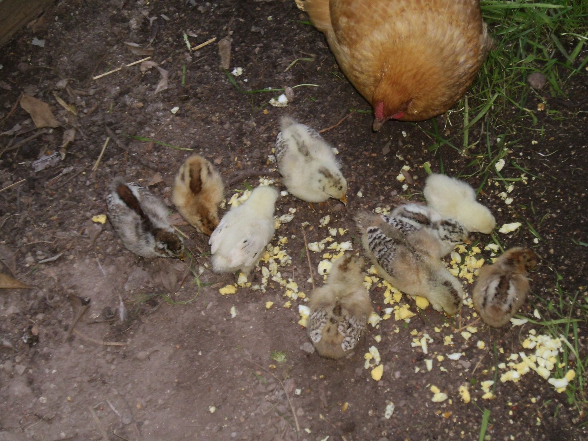 She was SUCH a good mum, hatched her 4 & then stole my 5 incubated ones! This was at about 9 weeks & she kept snuggling up to them for another 4 weeks! Just went back to the rooster's box. Gotta love em!