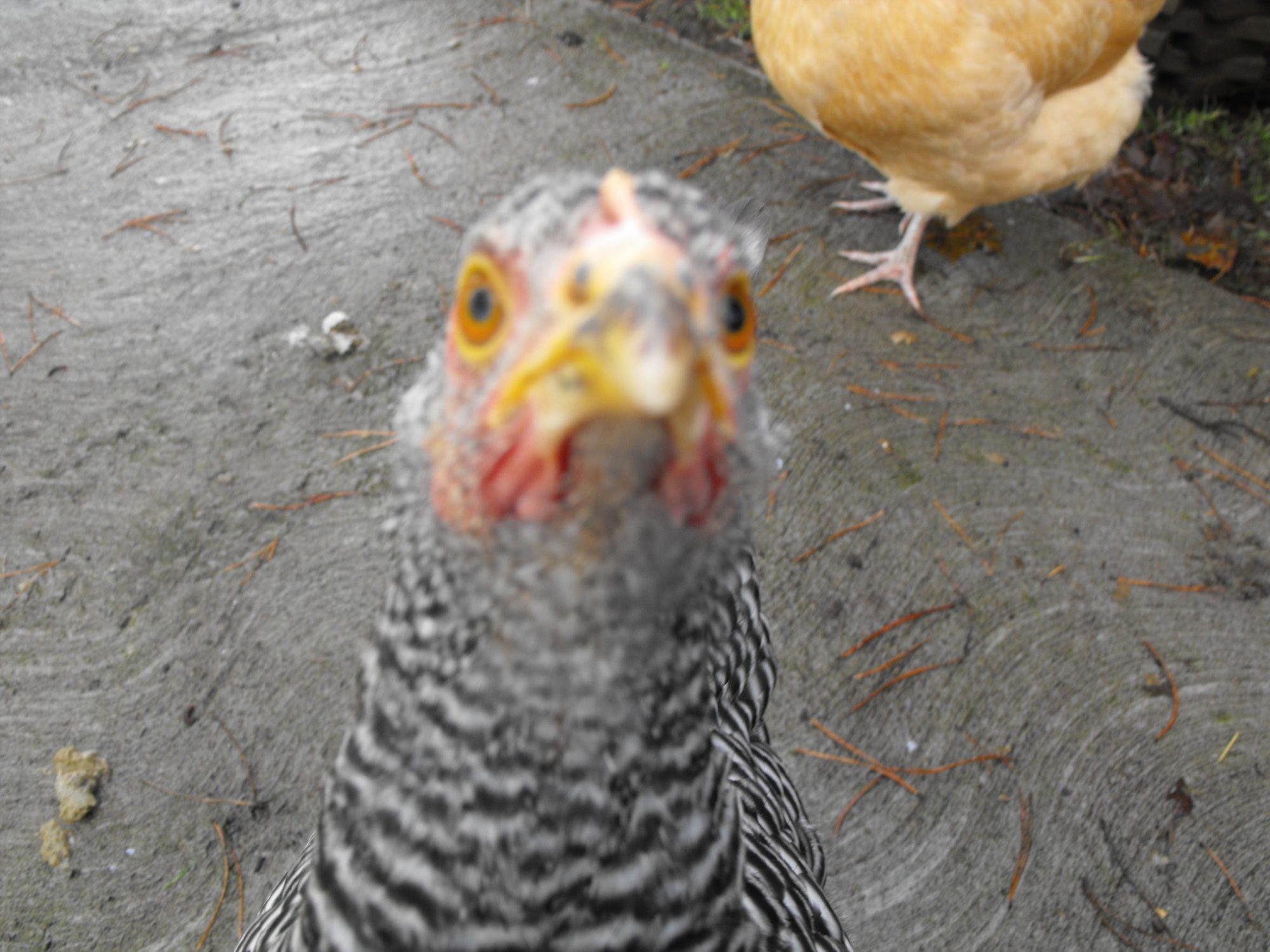 Dec 16, 2012 #961 Little Peep Songster 7 Years Joined Nov 20, 2012 Messages 1,264 Reaction score 18 Points 138 Location 9th Grader, Soccer Player, Book Reader, God lover, My Coop My Coop Here is a chicken in your face picture for u!