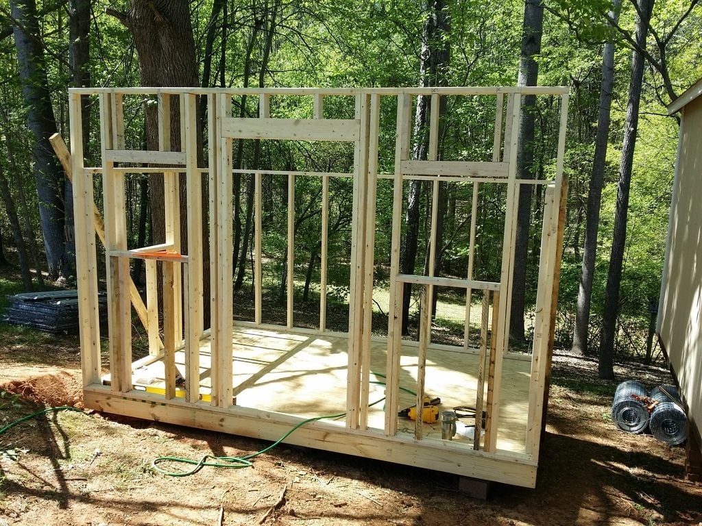 It's been about 11 years since we have had chickens, we were up to about 25 of a very mixed flock. We relocated and I have been wanting to get chicks again for a couple years and it finally happened. I bought a small coop that I was gonna mod to hold 3 or 4 chickens. Our first purchase was 8 chicks, with the idea that we could loose 1 or 2 plus maybe a roo in the mix. Worst case if they all make it, we sell a few. Well They're all doing great at 7 weeks, not sure if there are any roos yet. Now to quick get a bigger coop done. It will be done enough for them to move into this weekend and I can do the rest with them out there, make real windows, shingle the roof and do the run.