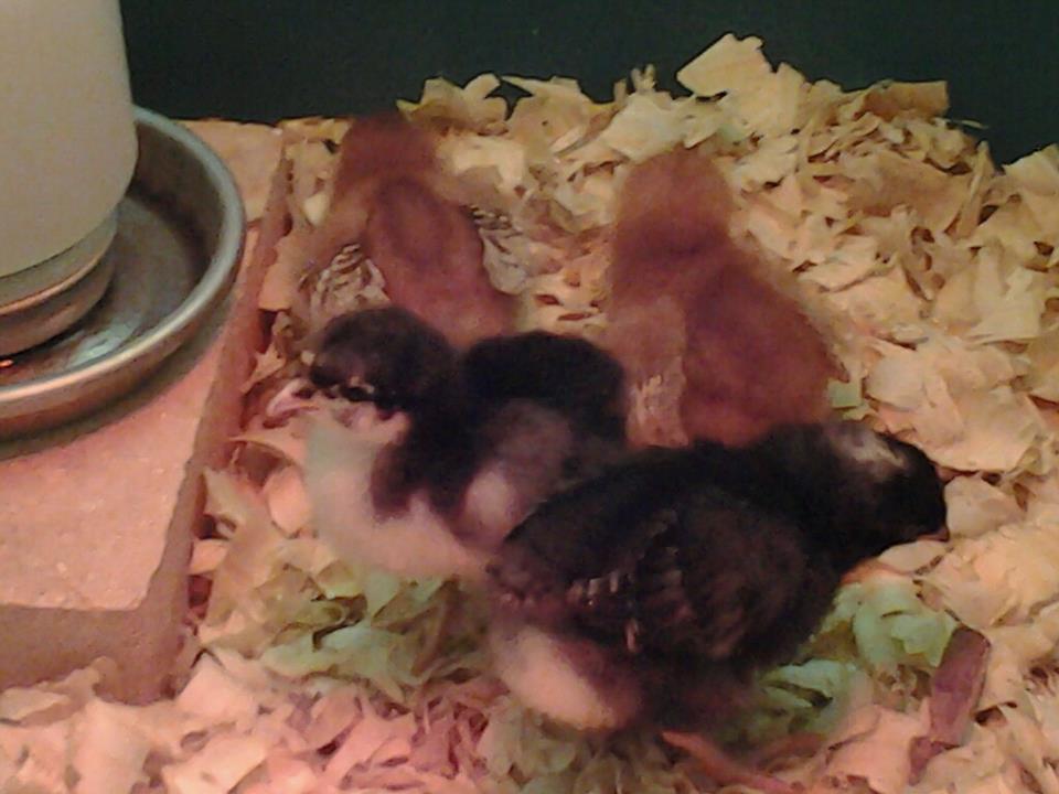 We have 27 five-week olds out in the coop. A friend gave me 2 six-day old Rhode Island Reds yesterday. My daughter asked if we could please get 2 more... We needed some black or blue in the mix... So we got 1 Plymouth Barred Rock and 1 Black Austrolorp. Now Nellie and Charlotte join Carrie and Grace in the brooder! Oh my! Yes, I am calling the psychiatrist in the morning!
