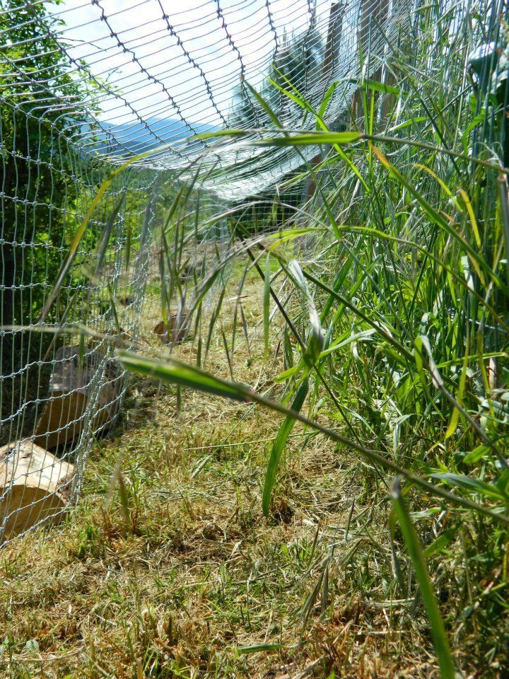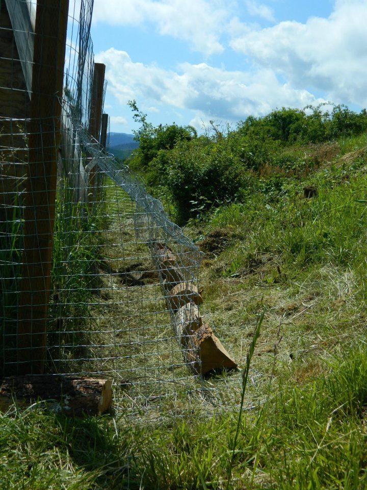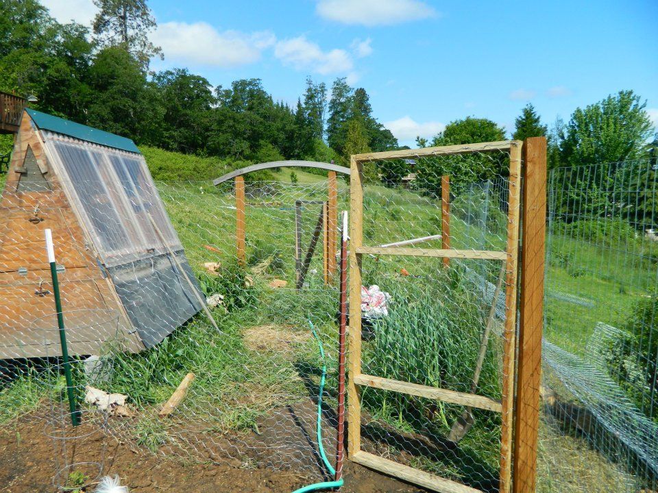 I am planning on building a "moat" around my existing garden which already has 8' high deer fencing. To solve the "hot" problem, I plan to clasp the wiring about halfway up the deer fence and simply bend the fencing and secure it to the ground, essentially making a tunnel for the chickens. This should protect them from predators AND I can plant things like peas and other climbing plants outside the tunnel to grow over the tunnel, providing them with some fresh stuff to nibble on and more importantly, shade.