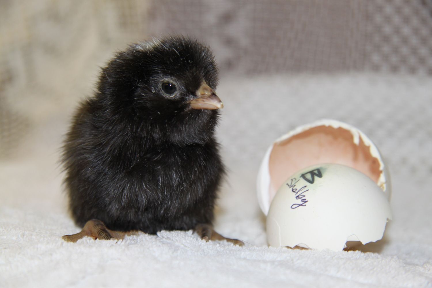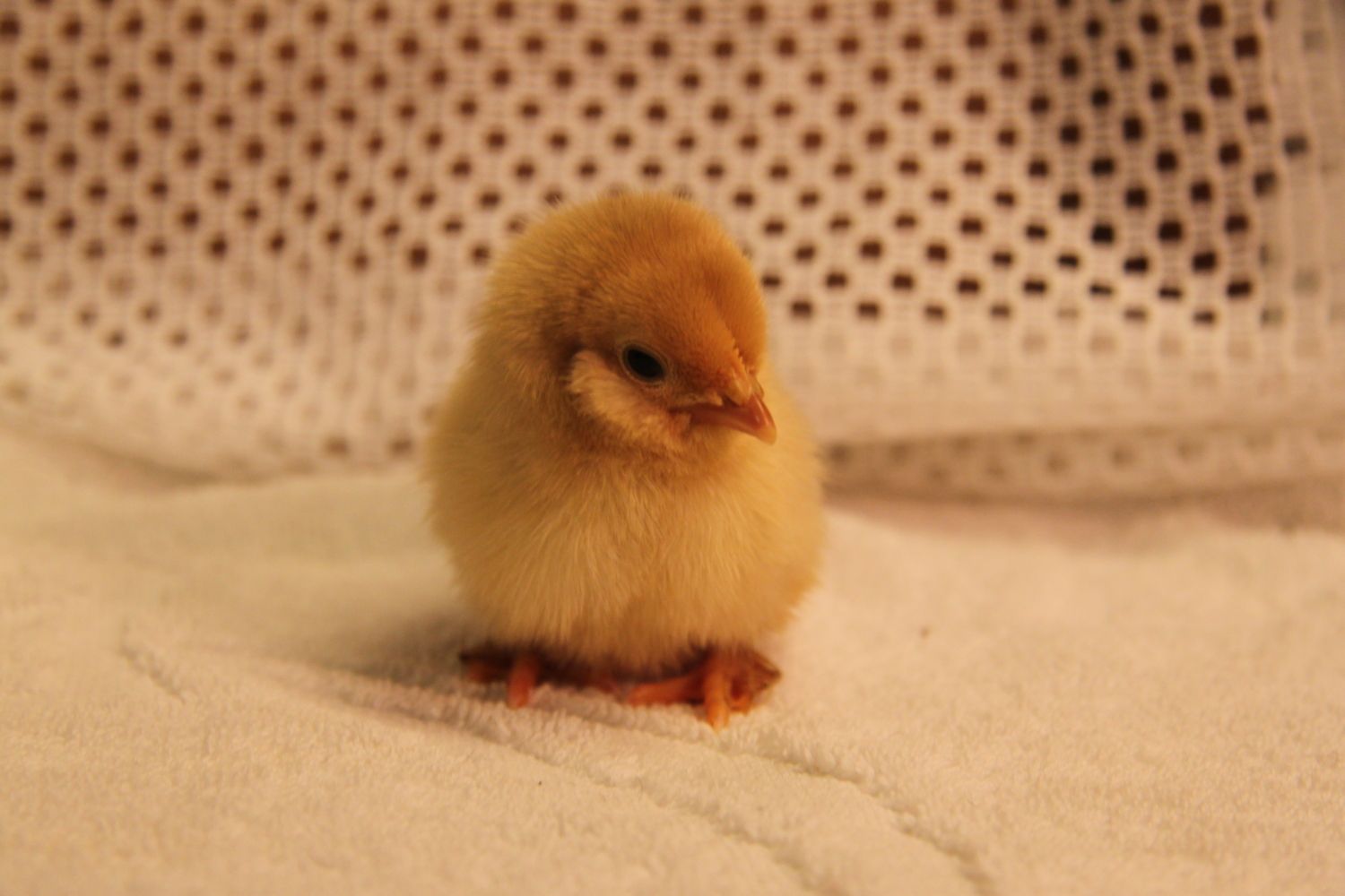 Rudy is a cute curiosity. I wonder if the chick will ever grow feathers.