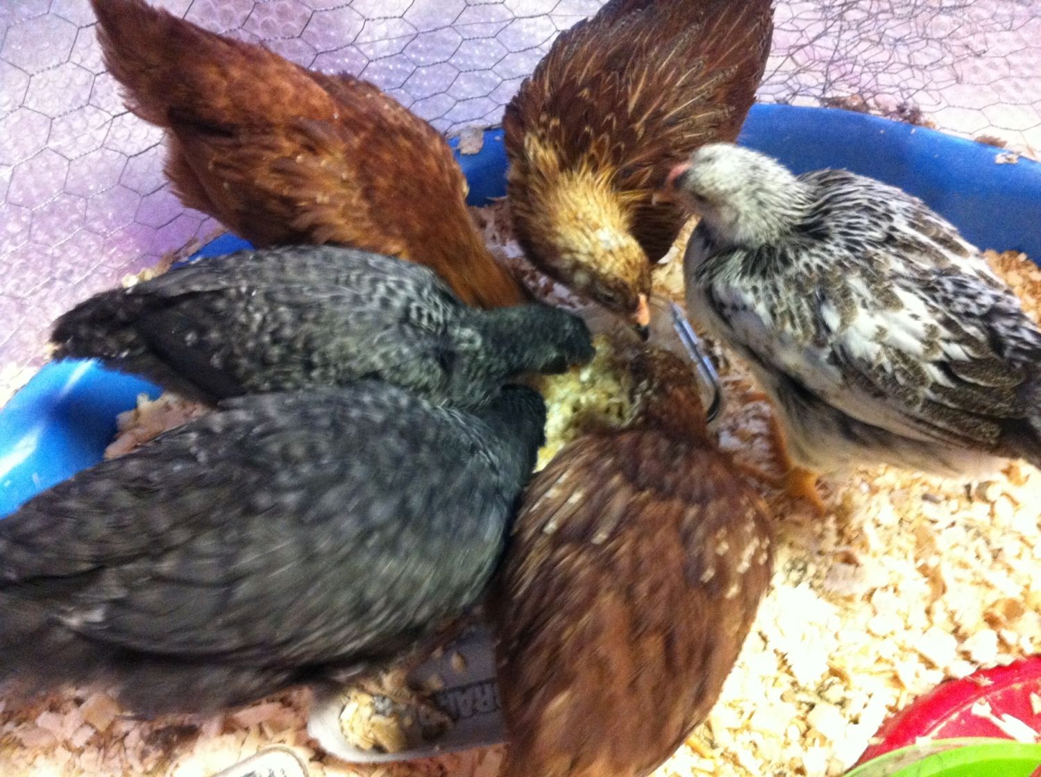 They're 6 weeks old now. Very hardy too! Survived the cold snap we had recently. Well, I did have 700 watts of heat in their 4 X 6 coop.How old r they!?