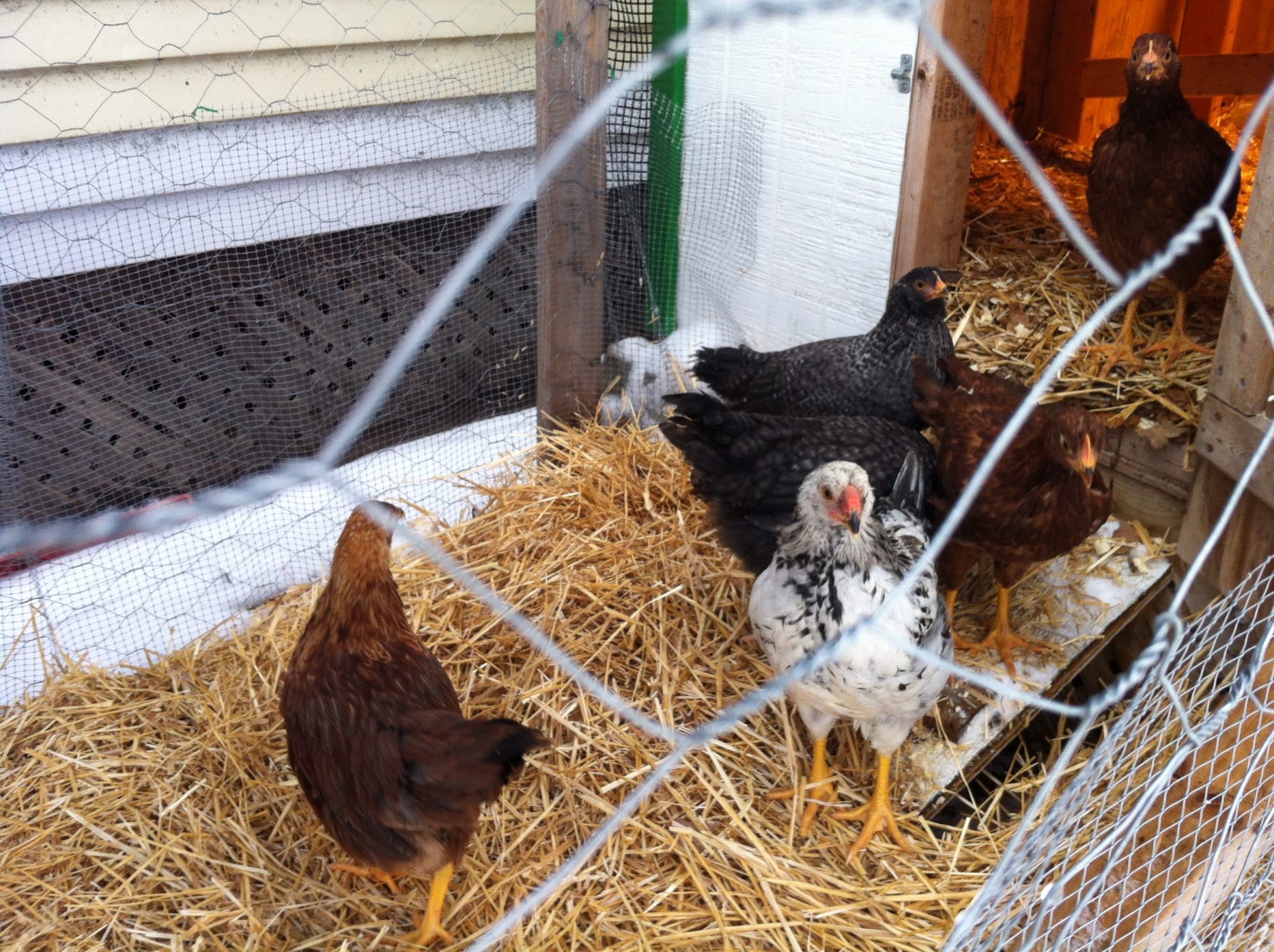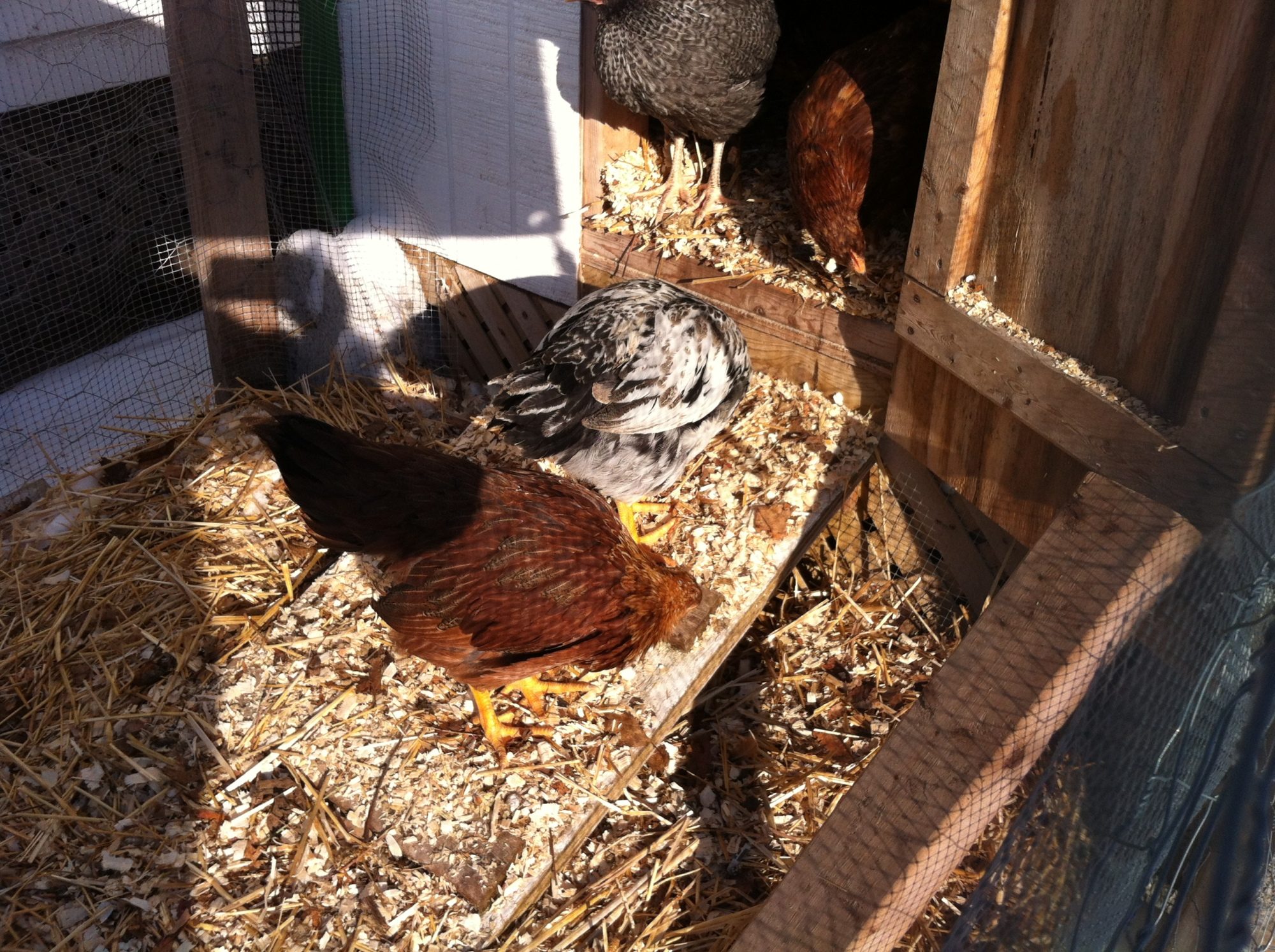 In the first pic the two black hens are Polish/Ameraucana and the golden is a Cochin mix. The small white hen w/black spots in the second pic is a Polish/Cochin.