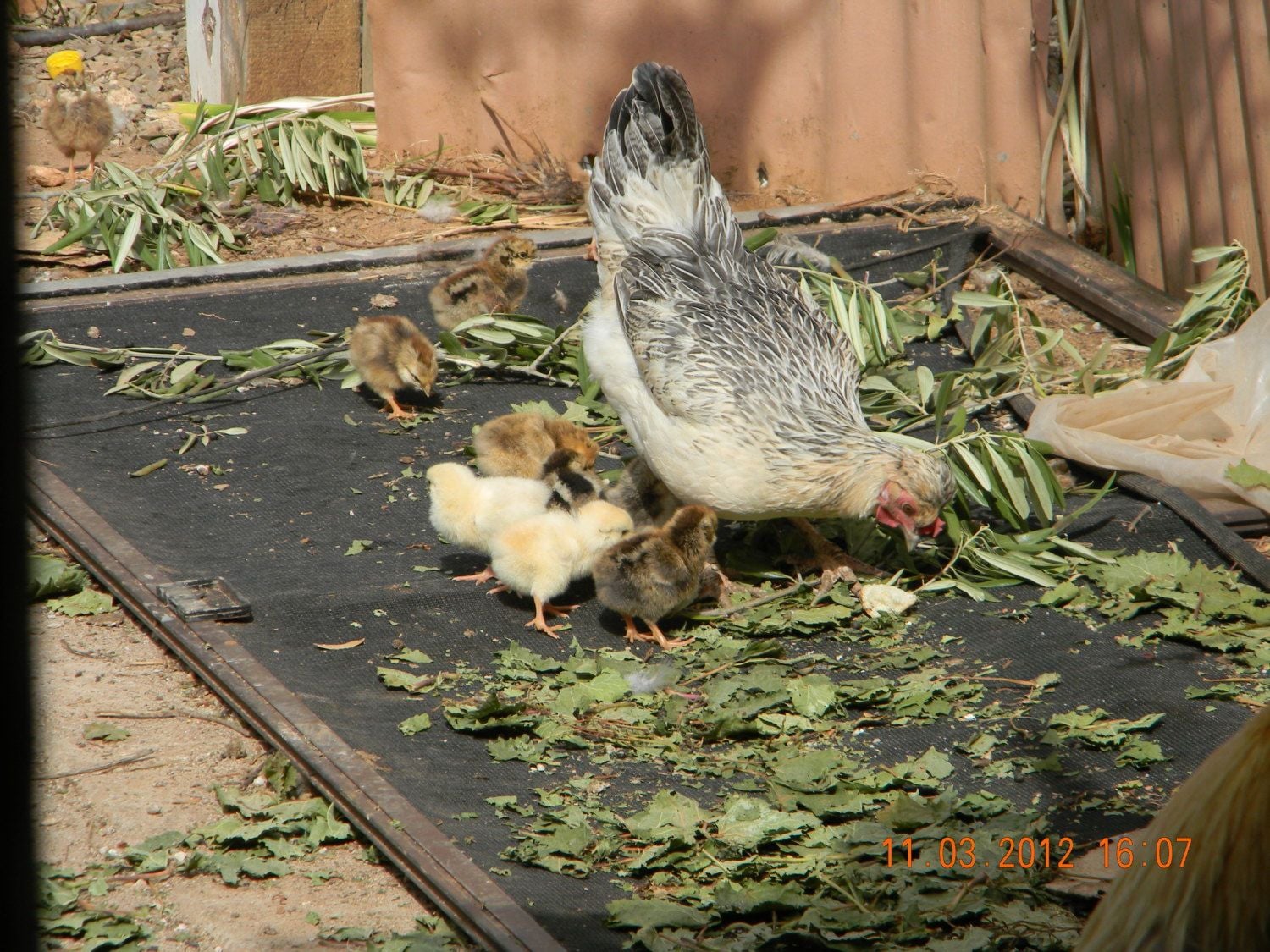 This is Eggatha, she was the UGLIEST **** bird i had ever seen, and talk about neurotic!! KARAZEY BIRD!! we thought she had died, didnt see her for weeks, then one day, here she was in the backyard with 10 chicks!! 10!!! she was TINY, i will never know how she sat in them all.. ugly bird.. i think she was a silkyXbarnyard mix..