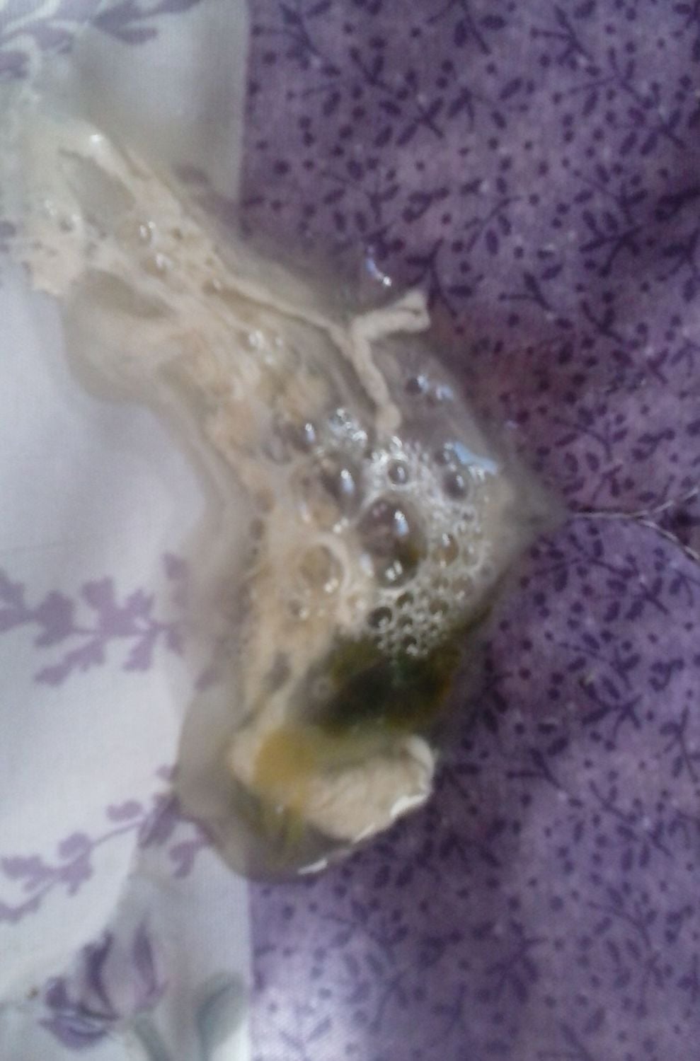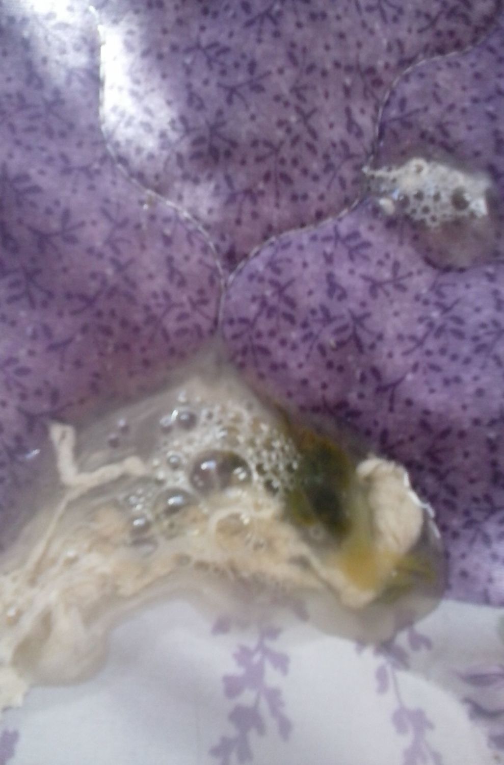 Now you will want to give your hen a bath. It sounds silly, but it really does help. Fill your tub, sink, or dishpan with warm (or even very warm) water up to a little above the hen's crop-height. Gently place your hen in the water until her abdomen and vent are completely submerged. If she freaks out, you will have to hold her down, but in my experience, hens placed into the water slowly and gently will actually like it and will need little to no restraint. Begin massaging her abdomen, from the front to the back near the vent, for several minutes. (Often, this encourages her to poop, so be prepared for a mess in the water.) After about ten minutes of soaking and massaging, remove her from the water, gently dry her, and separate her from the rest of the flock. Often it is advisable to keep her indoors in the presence of extra heat (but not so much that she begins to pant). Continue her soft-foods diet and give her one or two baths a day.