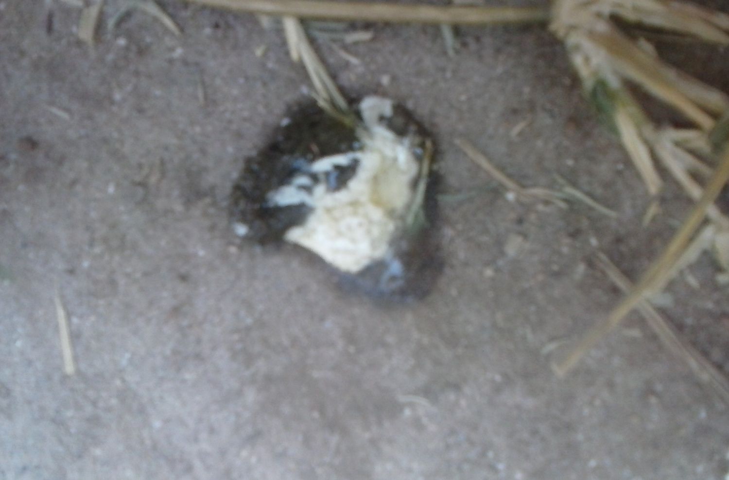 If there is no reddish tissue, check to see if there is anything whitish, yellowish, or brownish hanging out of the vent. If it is somewhat rubbery, this is probably softened egg shell resulting, most likely, from malformations of the egg and/or broken shell. Gently and slowly pull this tissue out (as much as you can). Most of it (if not all) should come out with some gentle pulling, but if only a part of it will come out and the rest is stuck, cut the removed part away from the stubborn part.