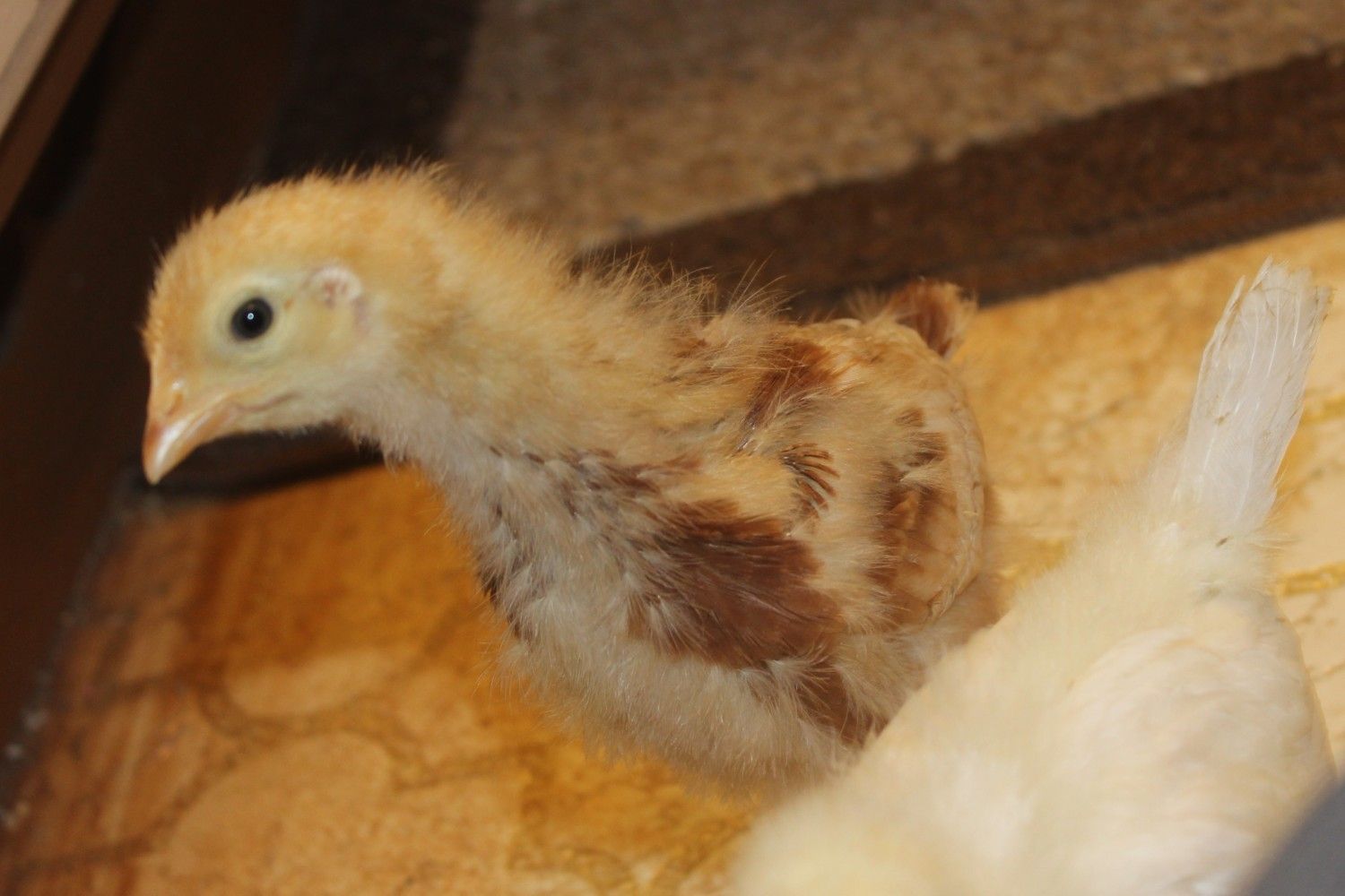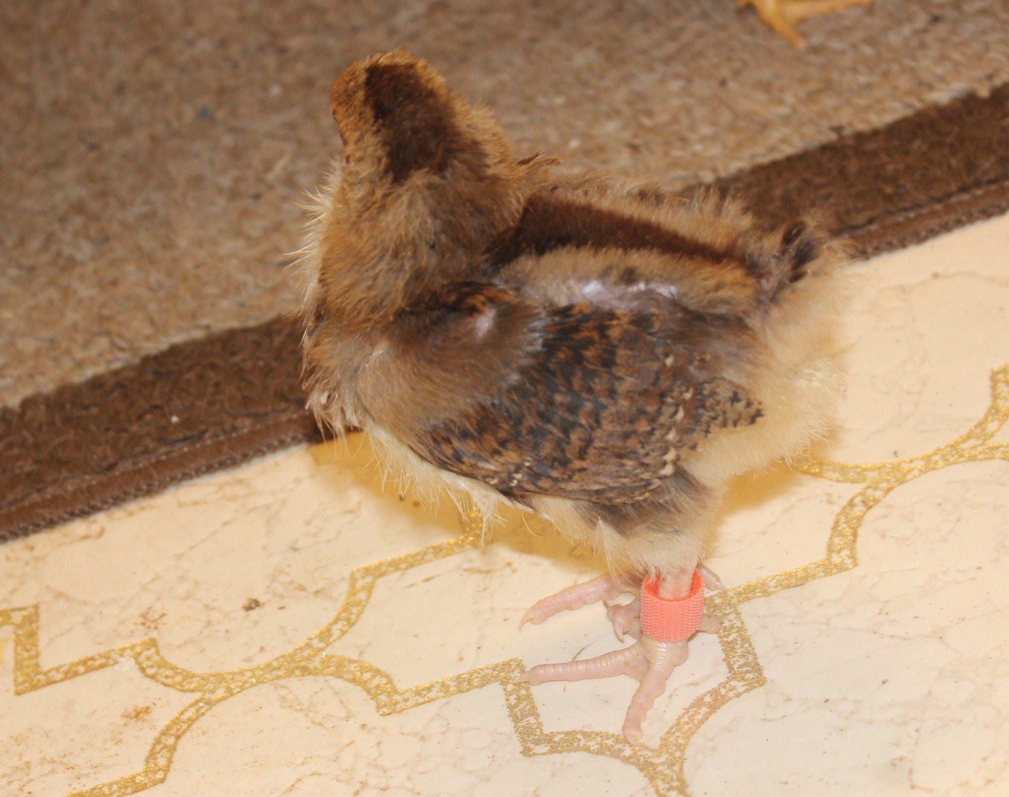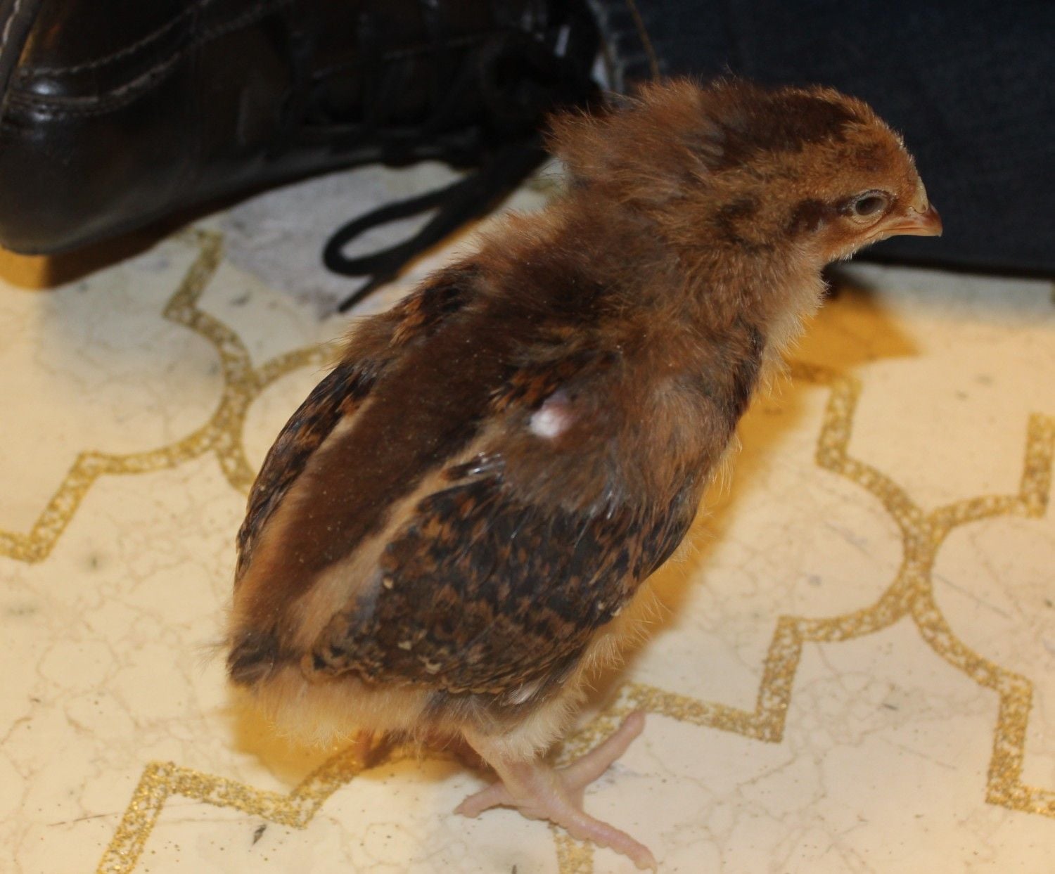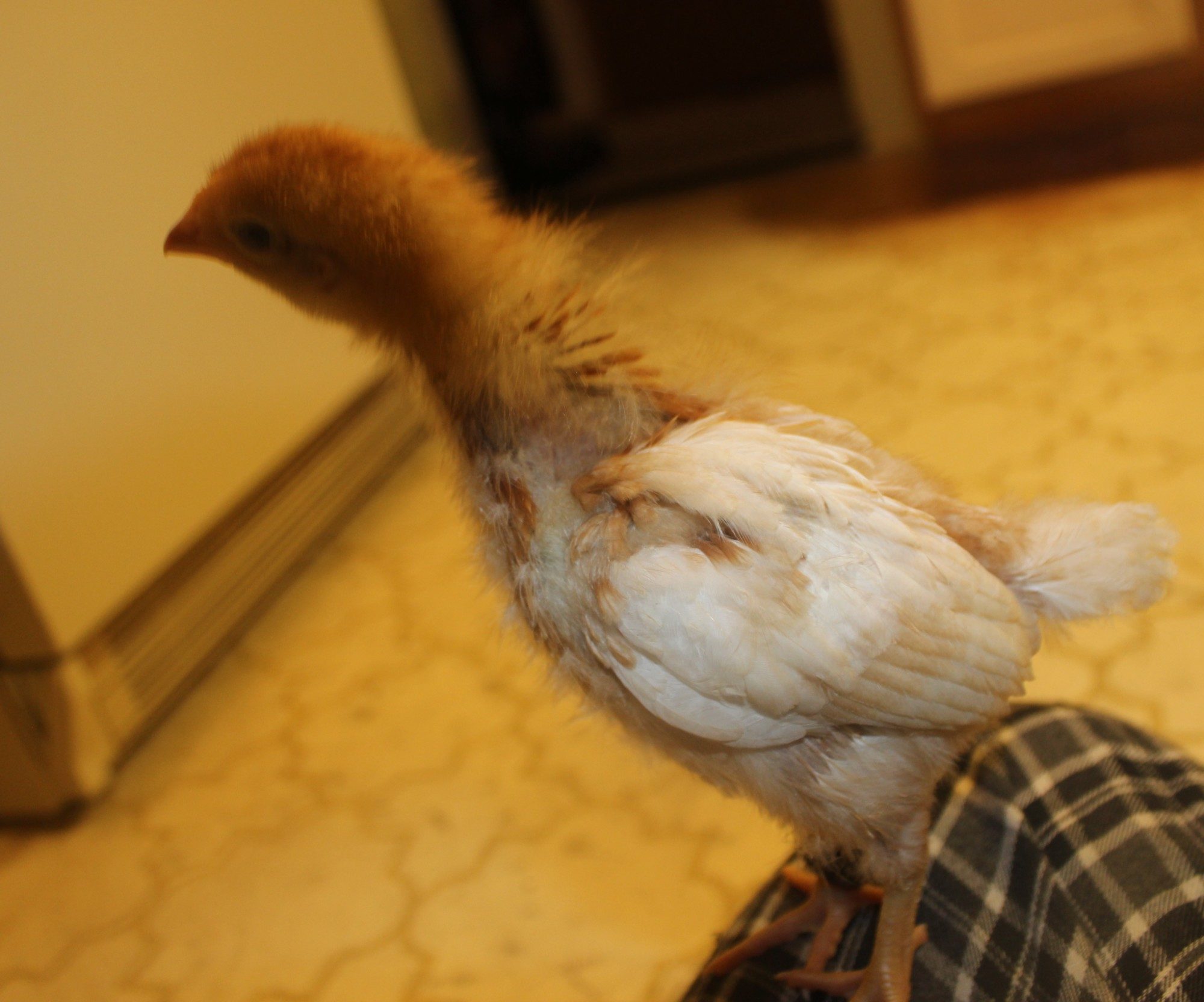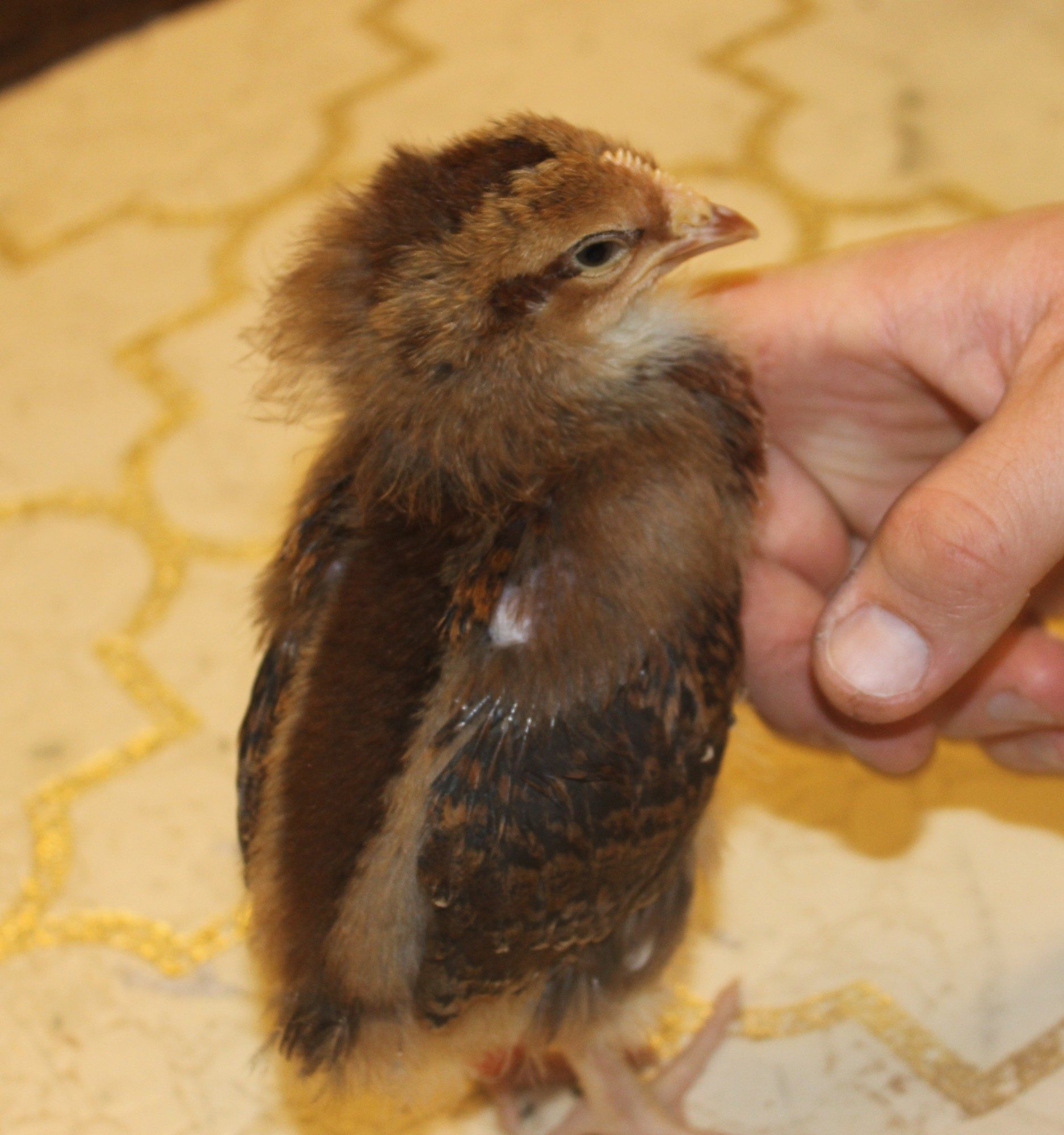 Not sure if he is being pecked at or just bald spot from losing baby fluff?