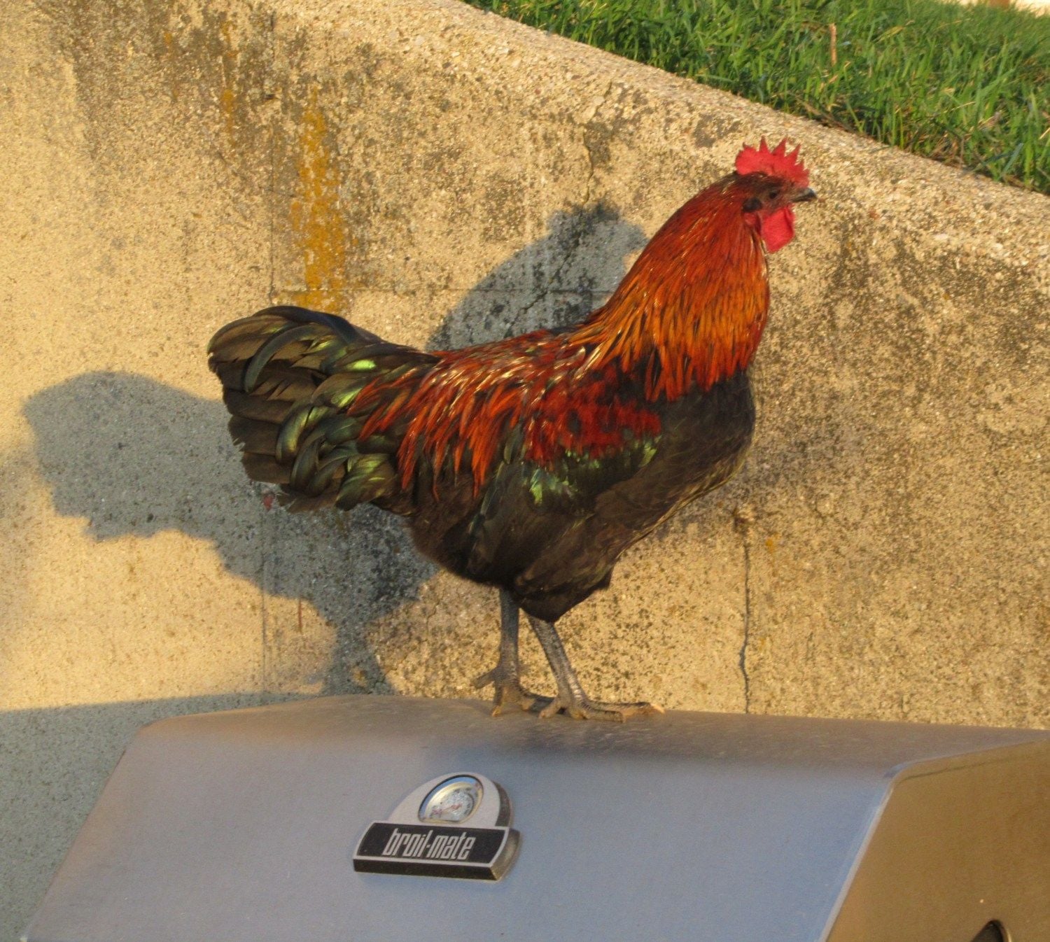 LOL I was expecting a broiler on the BBQ. Looks like a handsome Welsummer.
