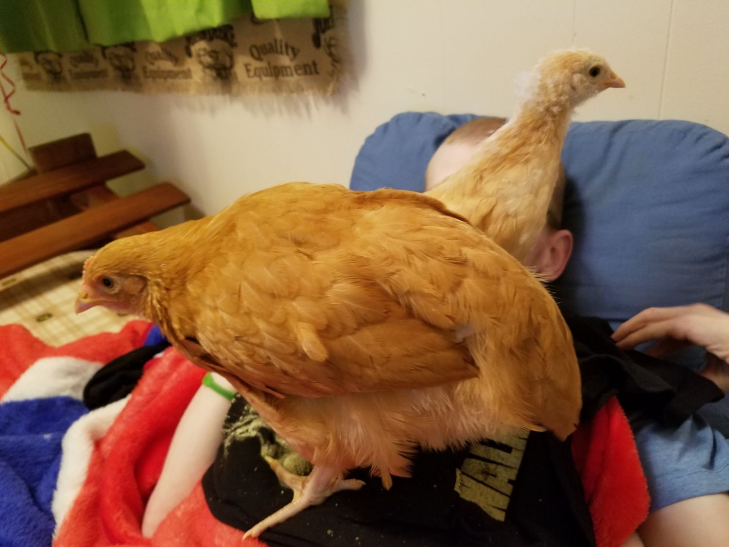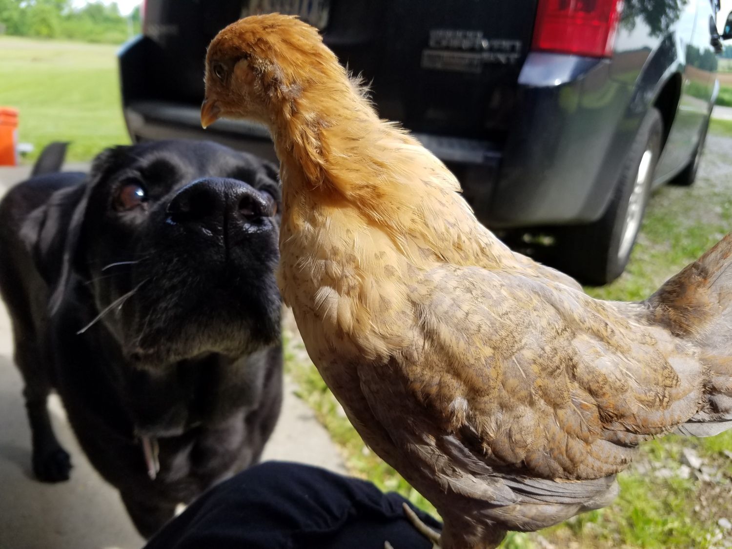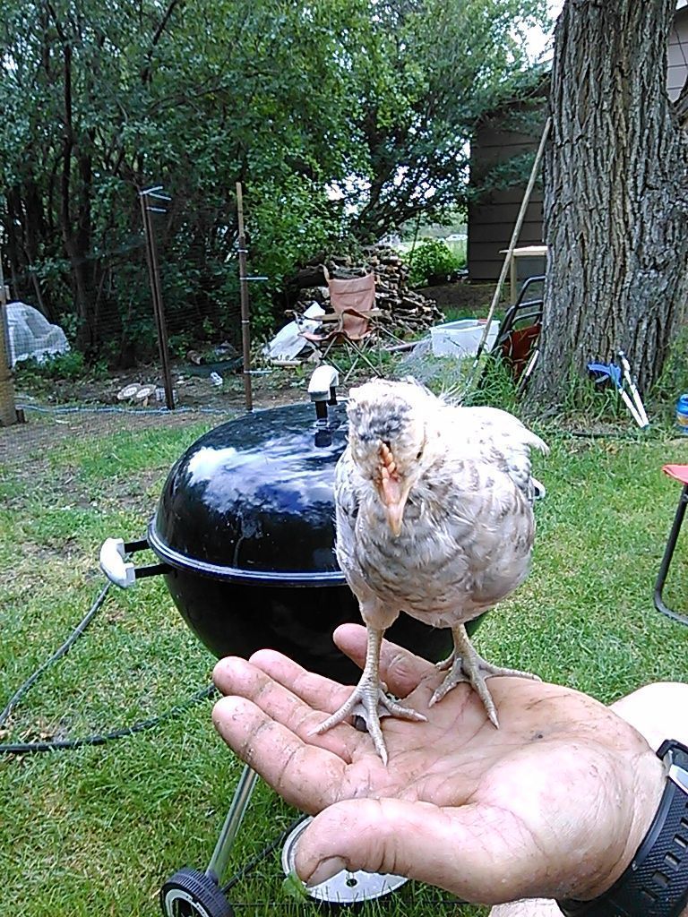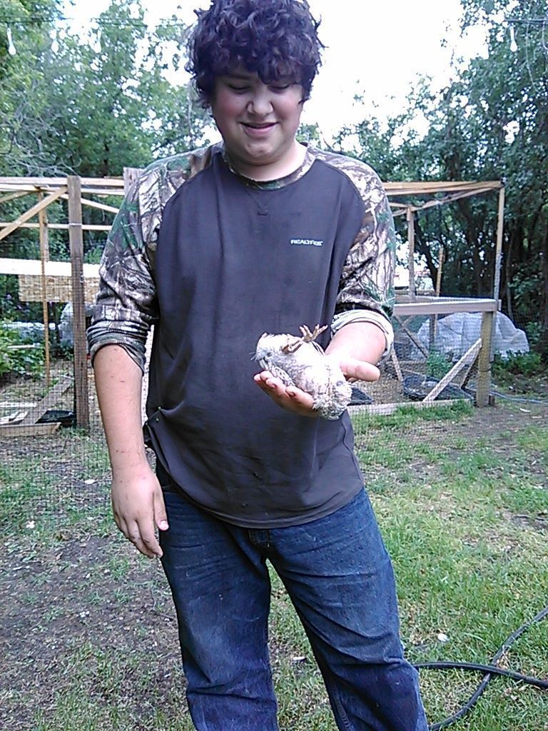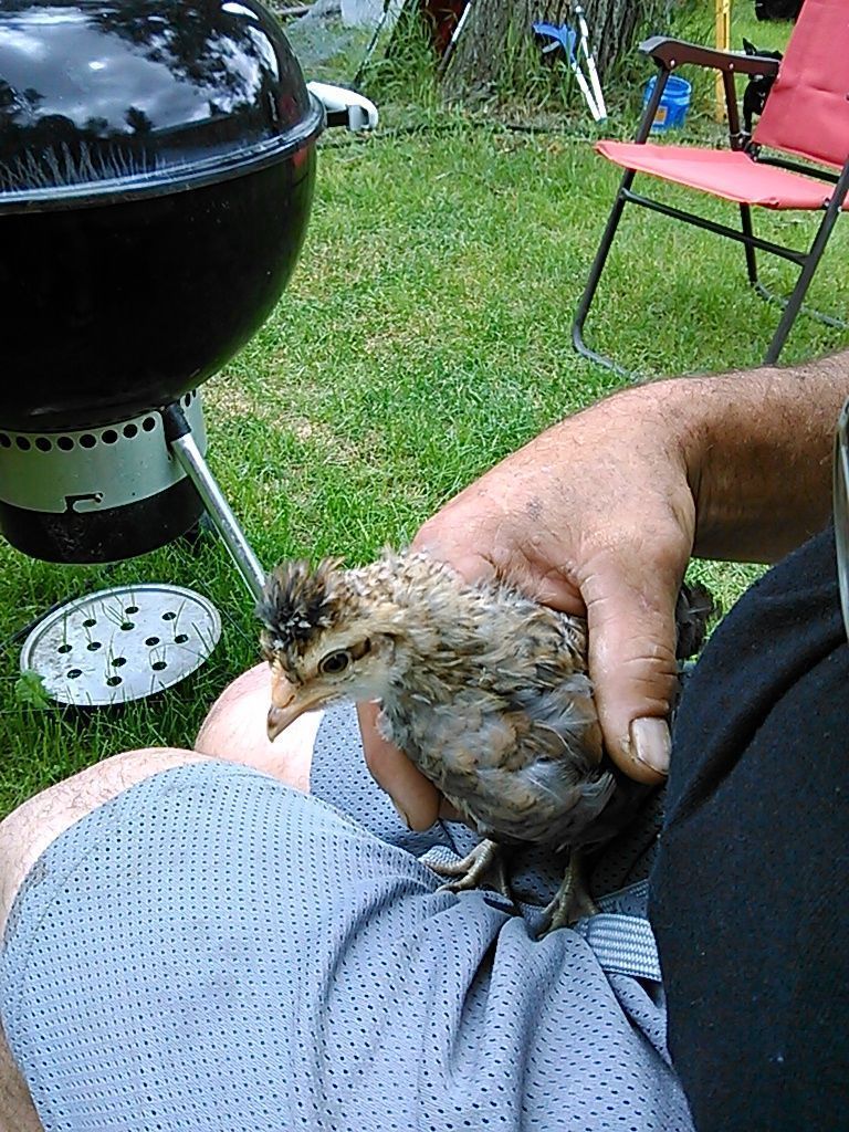 Last week huge week for chicks! Wed I installed netting over coop and canopy, expanding their run to about 10 x 50. I needed help from a guy at church, the FOLDING of netting and getting it over everything wad hard and two man job. This day, as soon as we let them onto new grass, my lead girl Tania caught a baby frog! She almost started a chicken uprising!