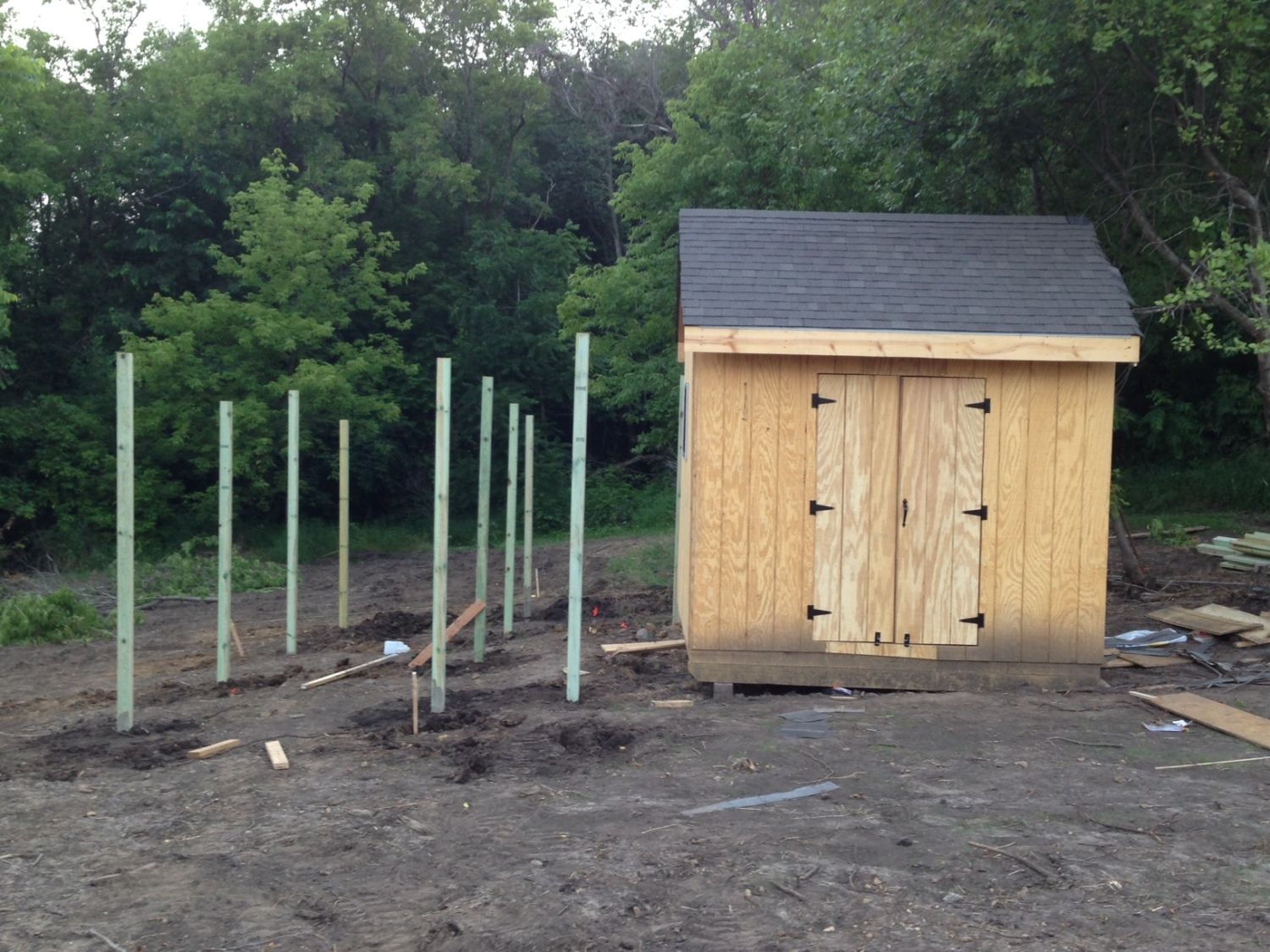 I am new to chickens, and I am sure this has been asked a hundred times. I am just about finished with my coop, and i am now starting my run. As you can see I have all my posts in, and need to start enclosing it. I am going to run 2 x 12's on the bottom between the posts, covered with hardware cloth 1' underground and 3' above. On top of that I am going to run chicken wire from the 3' mark to the top overlapping the cloth by about 6-8 inches. My question is what should I run over the top, I don't think I can afford hardware cloth over the top. My run is a 24 x 24 square minus the 8 x 10 coop.