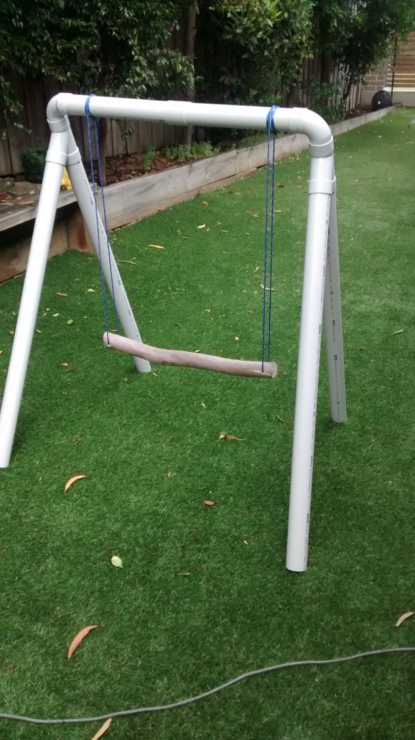 I built a chicken swing last week. Unfortunately they don't seem to be interested in it. I have it under a house eave to give it a bit of shelter in the rain. The idea is to give them something to play with in the rain and stay dry.